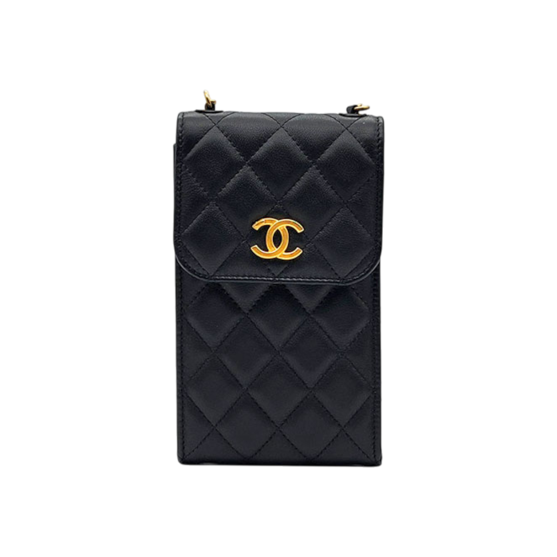 샤넬 A70655 블랙 캐비어 CC 로고 지퍼 폰 케이스 미니 금장 체인 크로스백 aa34248