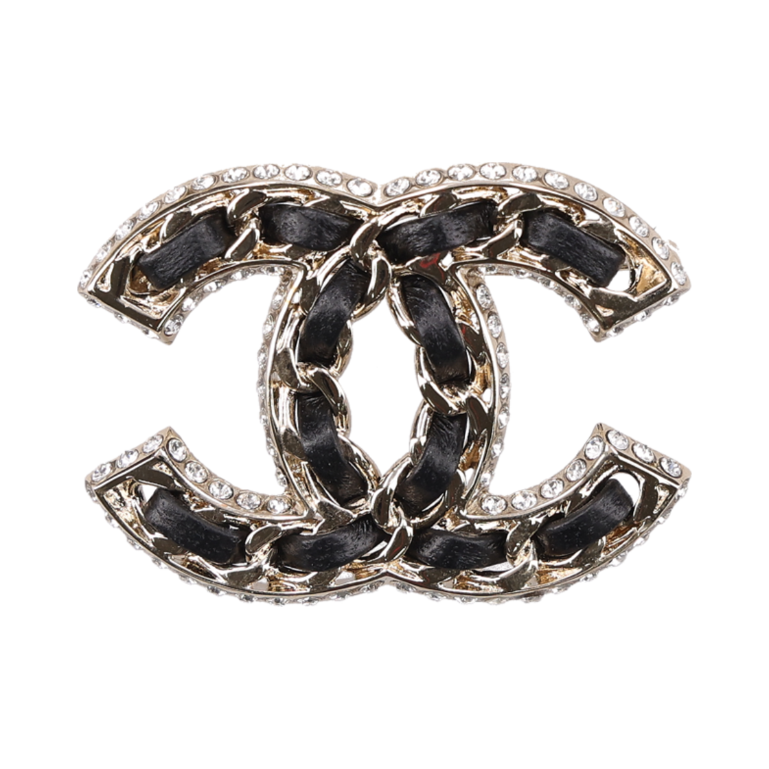 (W) 샤넬 메탈 레진 & 스트라스 브로치 골드 블랙 & 크리스탈