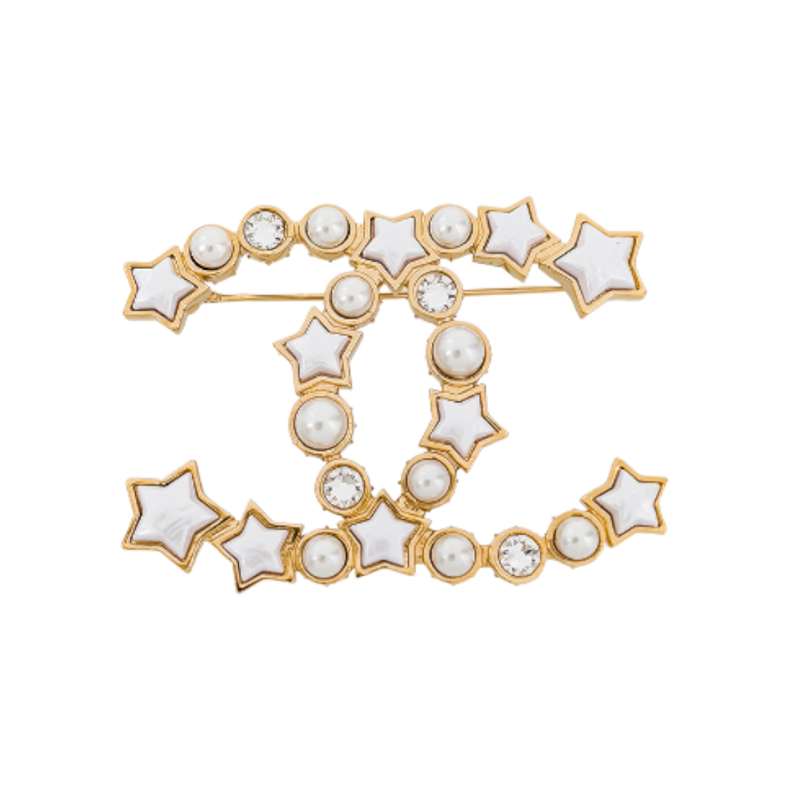 샤넬 24C 스타CC로고 브로치 펄리화이트 샴페인골드 (5ET1462)