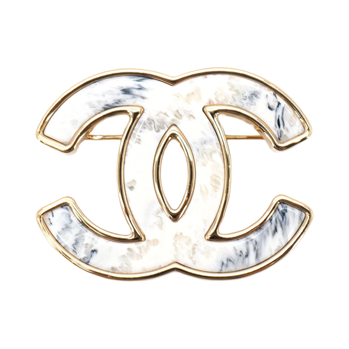 샤넬 23A NO.5 마블링 브로치 화이트 샴페인골드