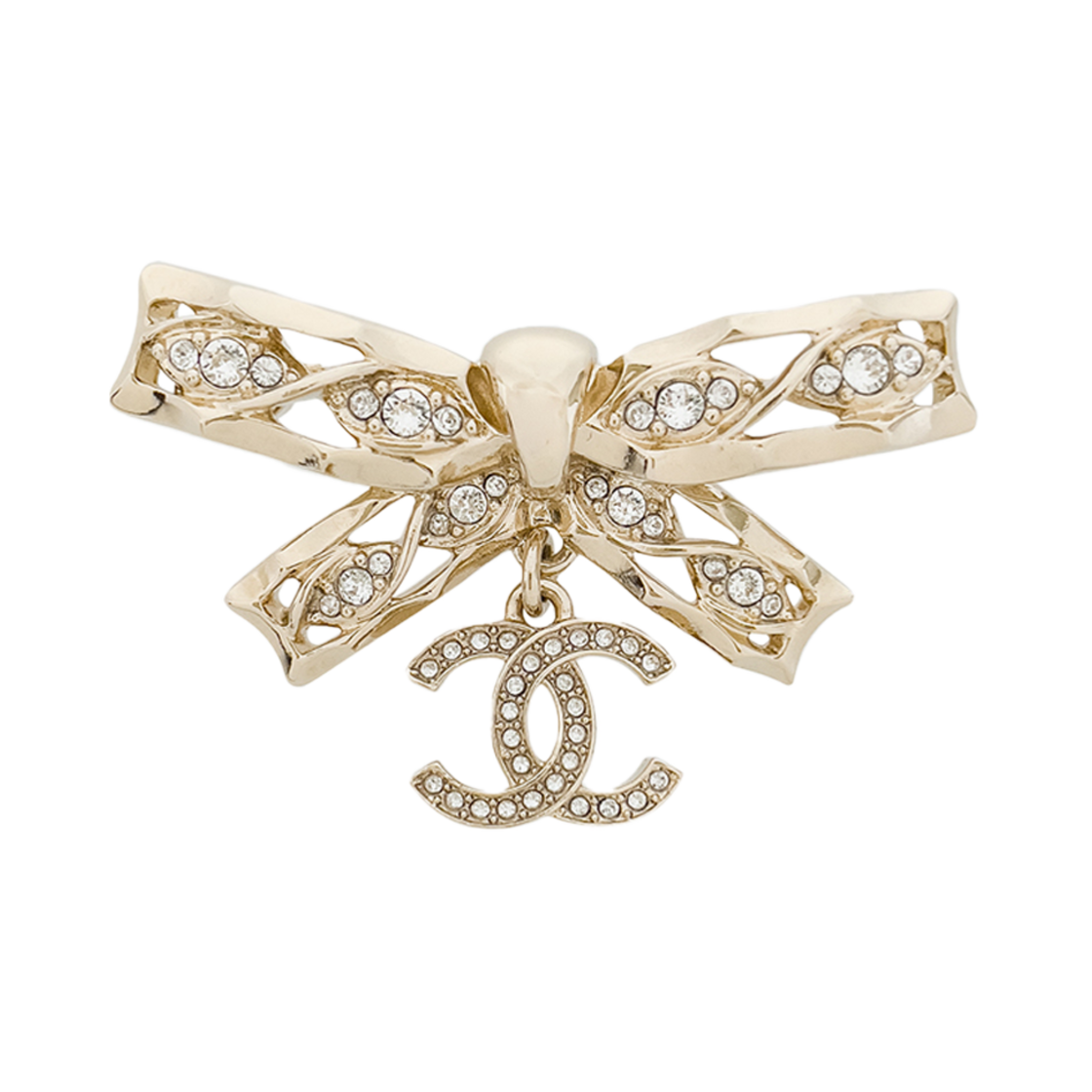 샤넬 24B 리본 CC로고 드랍 브로치 샴페인골드