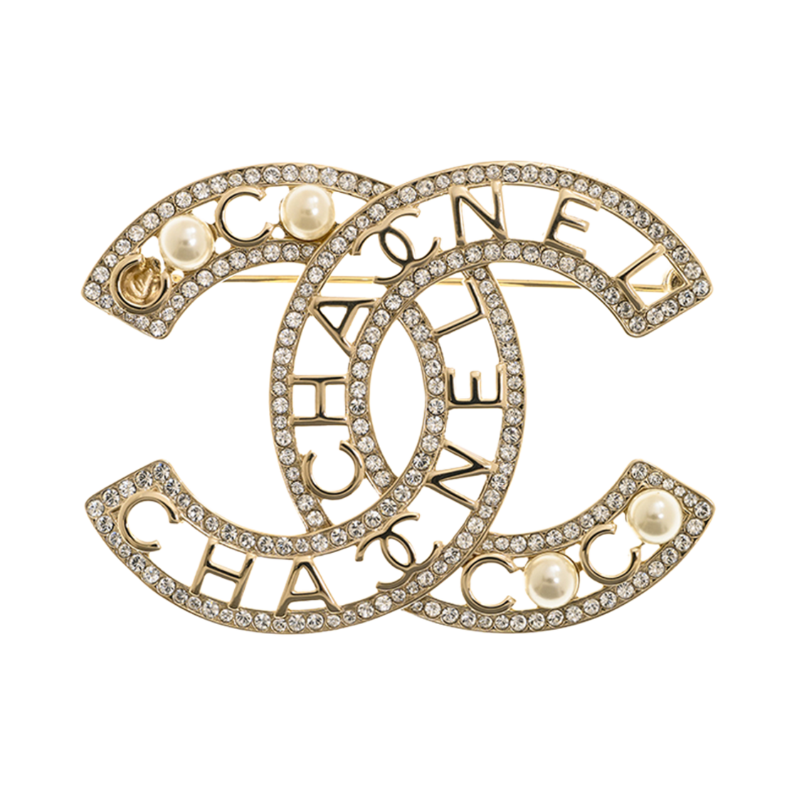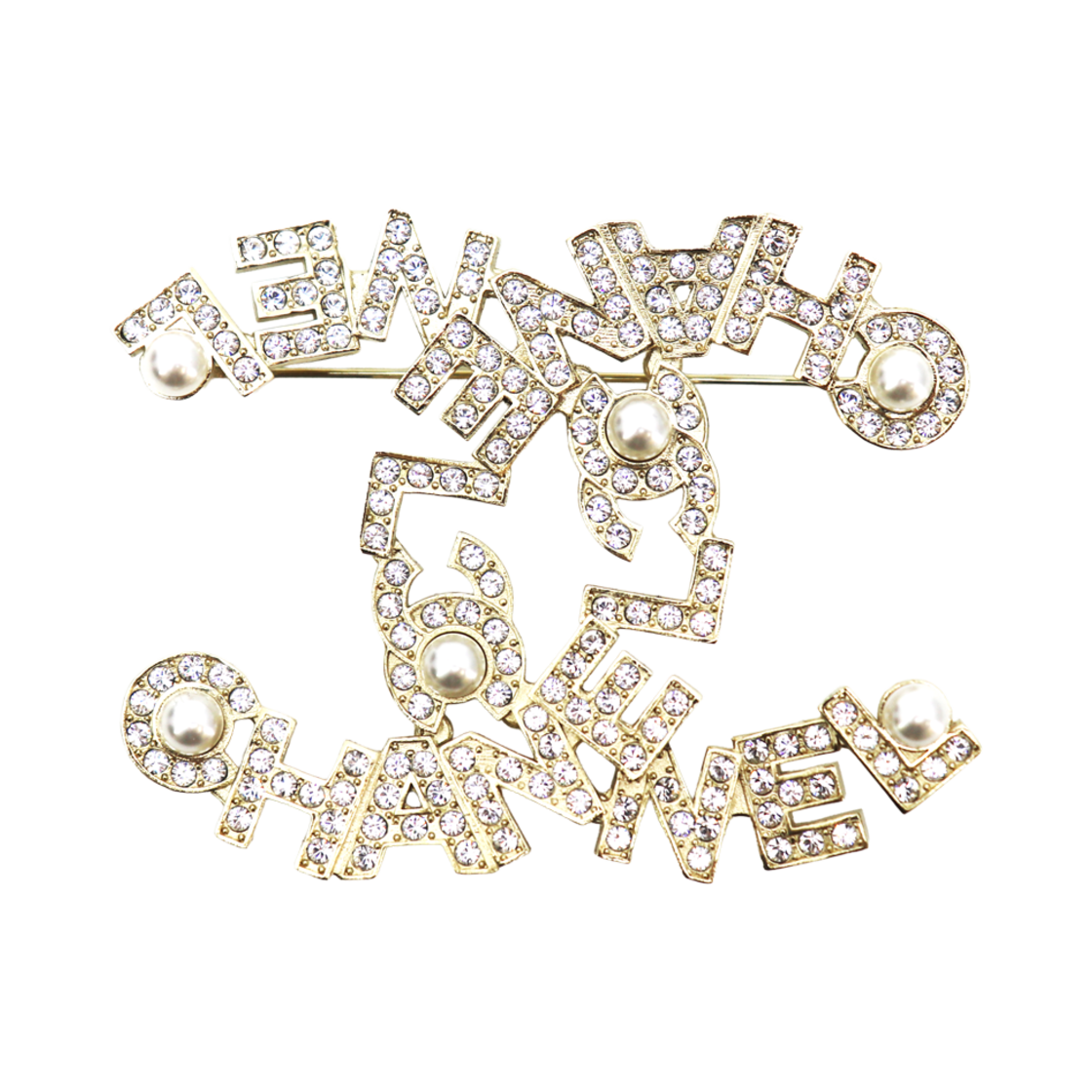샤넬 레터링 펄 크리스탈 브로치 AB4759