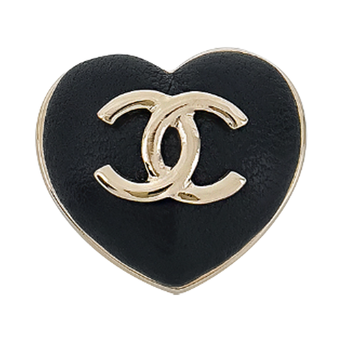 샤넬 22K CC로고 레더 하트 핀 브로치 블랙 샴페인골드