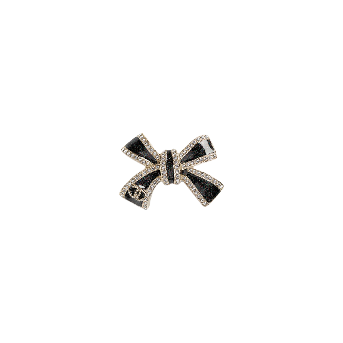(W) 샤넬 메탈 레진 & 스트라스 브로치 골드 블랙 & 크리스탈