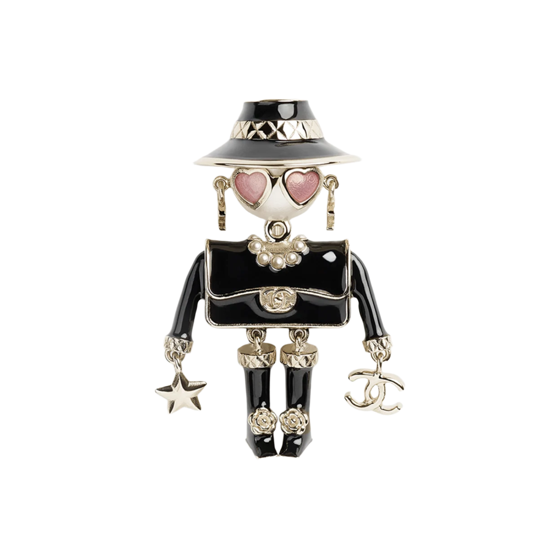 샤넬 브로치 메탈 레진 & 골드 블랙