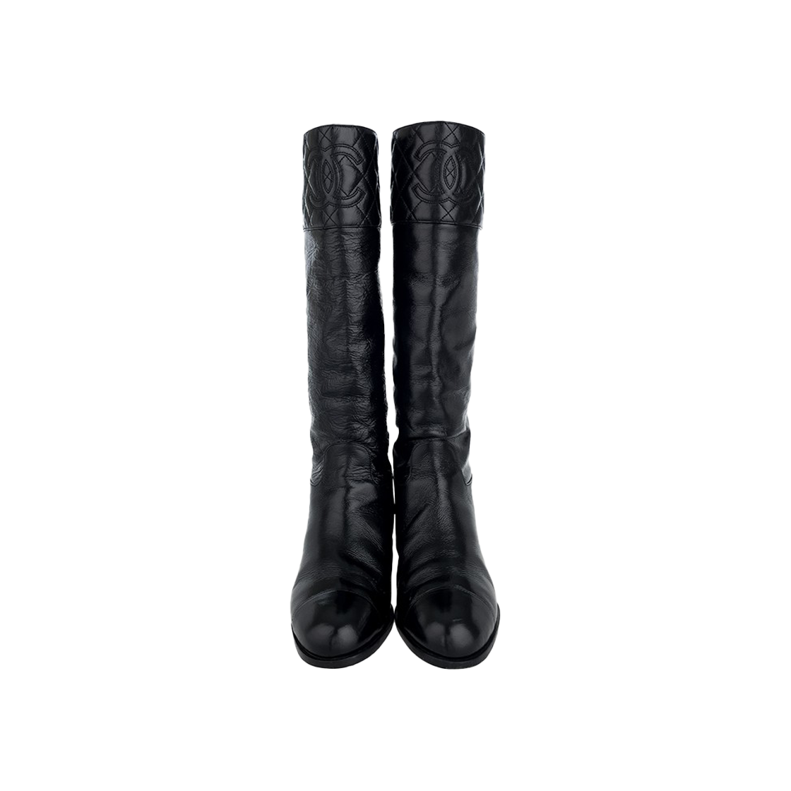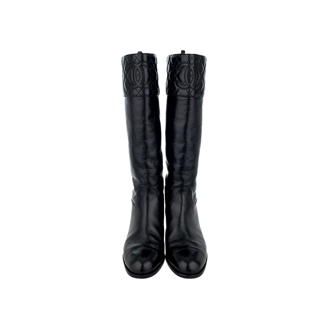 샤넬 블랙 페이턴트 미들 부츠 37C