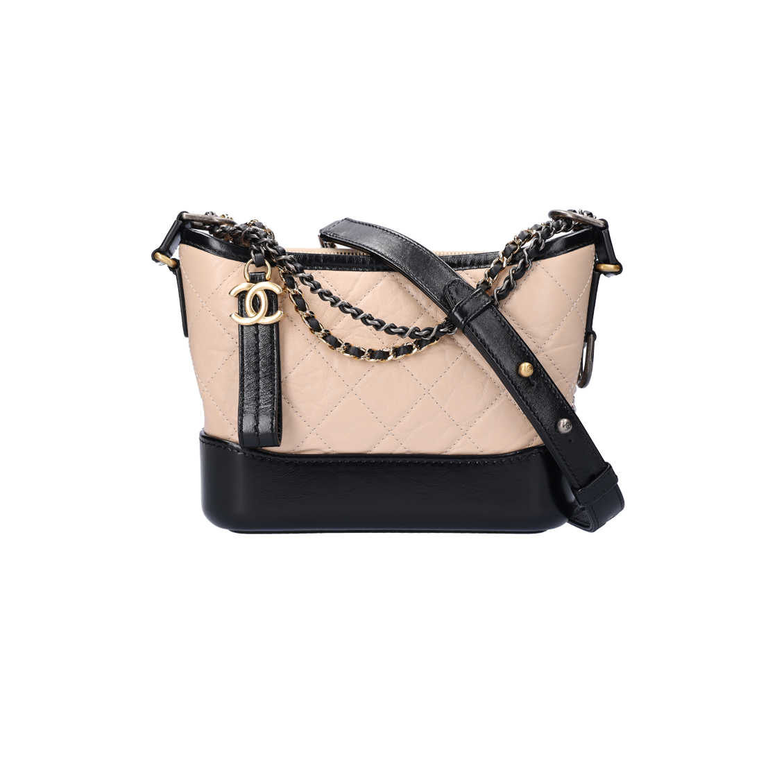 샤넬 가브리엘 스몰 호보백 빈티지 카프스킨 & 골드 메탈 베이지 블랙