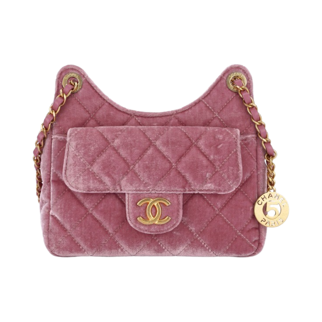 샤넬 스몰 호보백 벨벳 & 골드 메탈 핑크