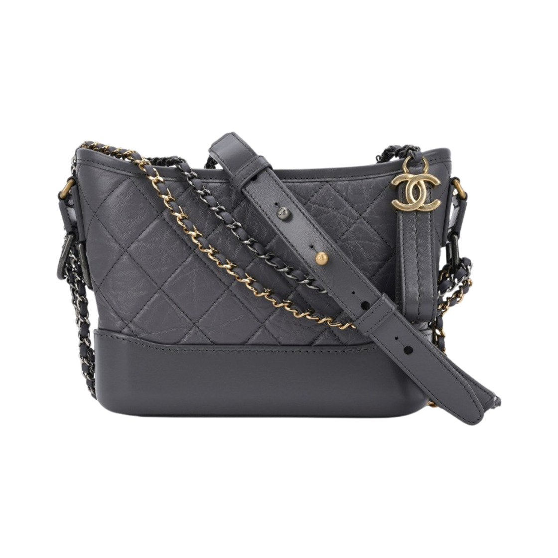 샤넬 가브리엘 스몰 호보백 빈티지 카프스킨 & 골드 메탈 다크 그레이