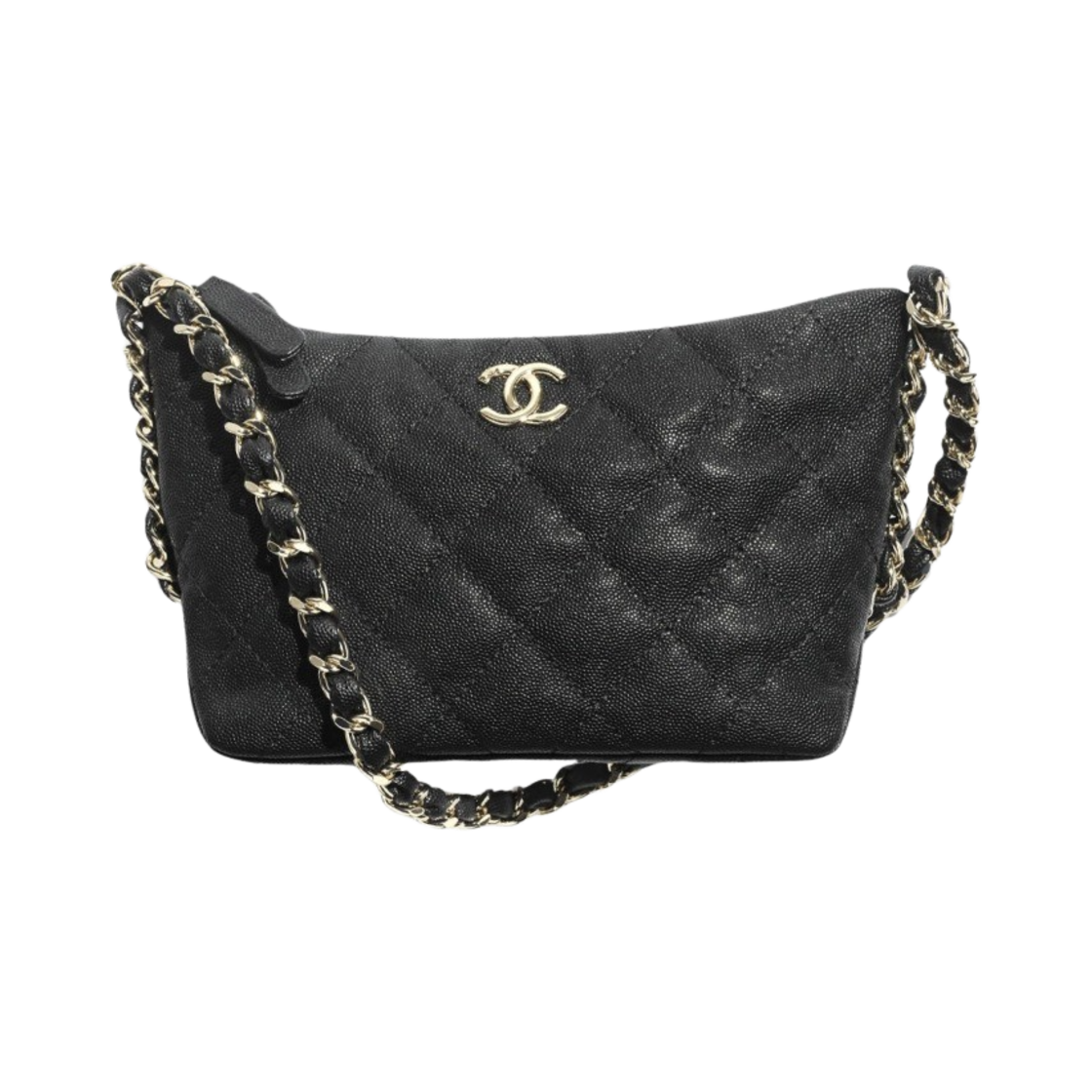 샤넬 스몰 호보백 그레인드 샤이니 카프스킨 & 골드 메탈 블랙