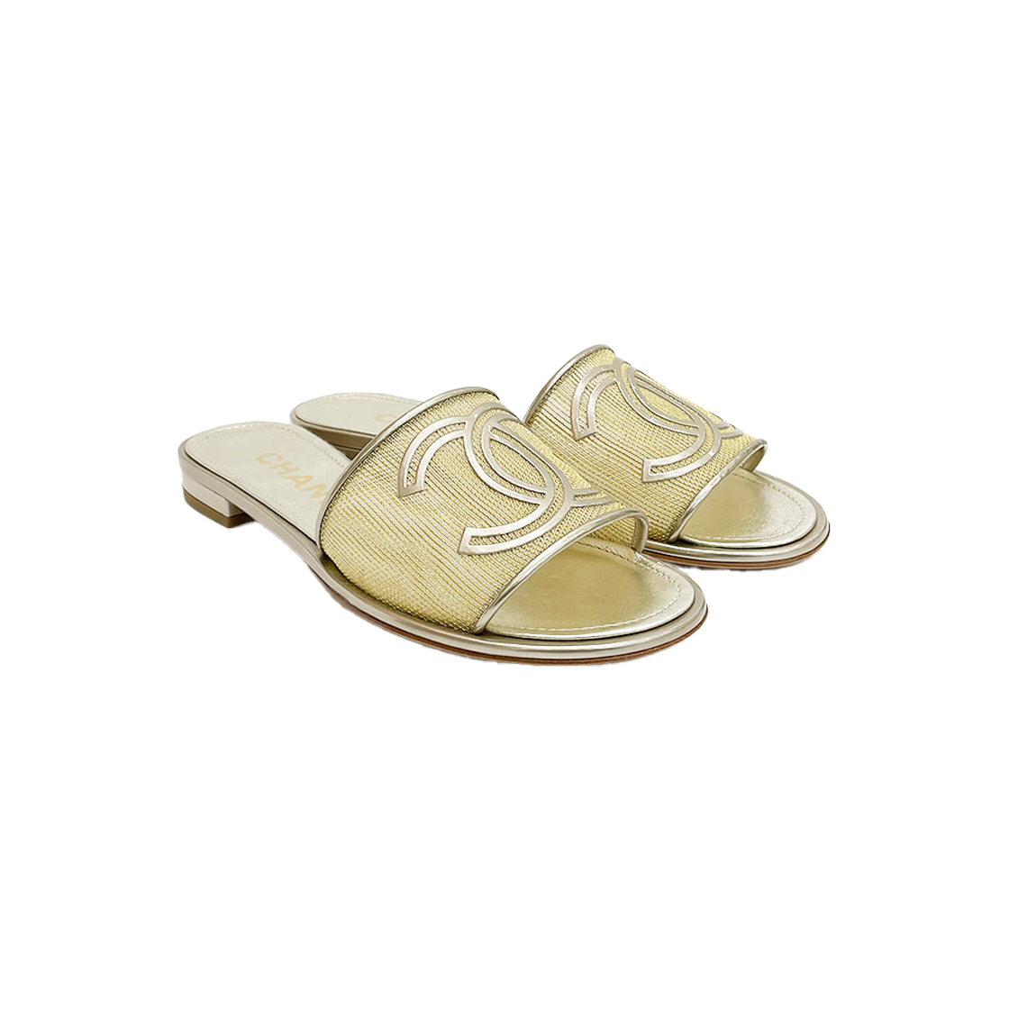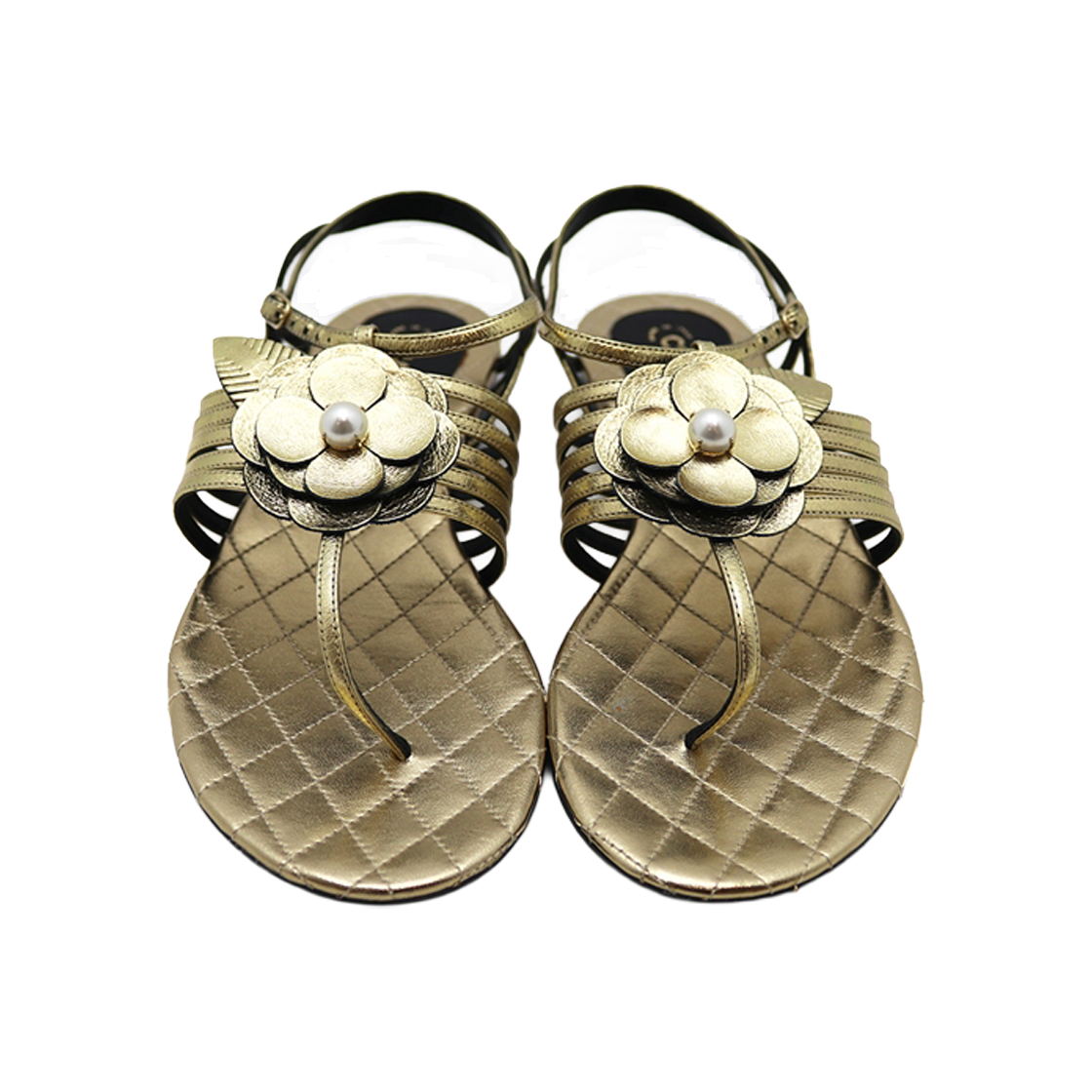 샤넬 스트랩 샌들 37.5 베이지 샴페인골드