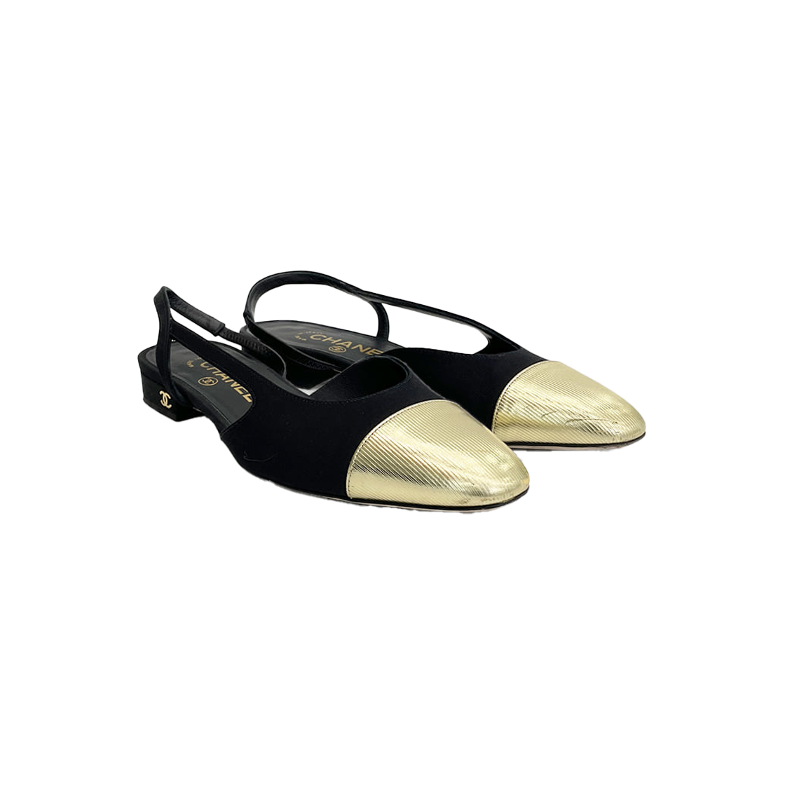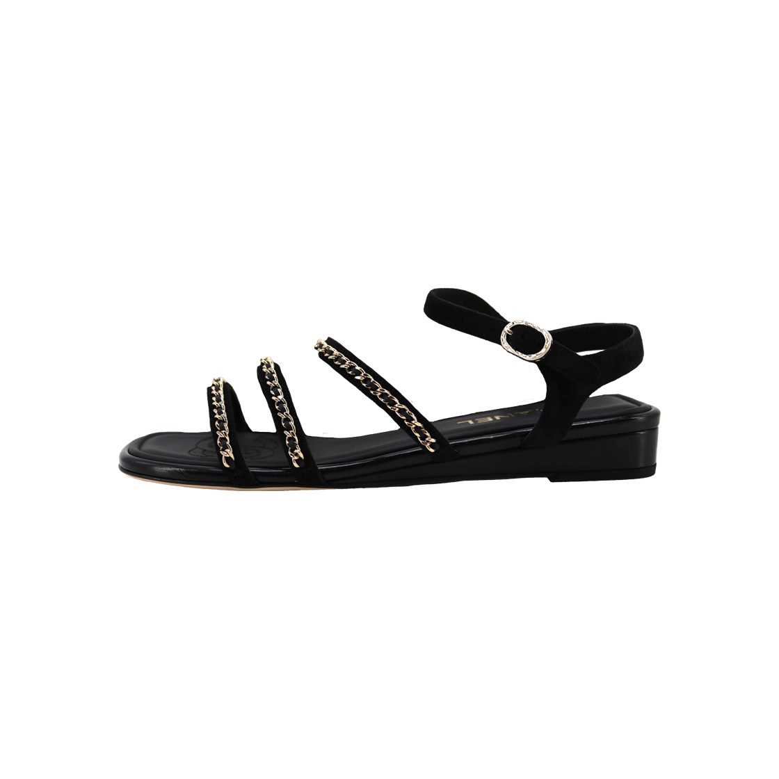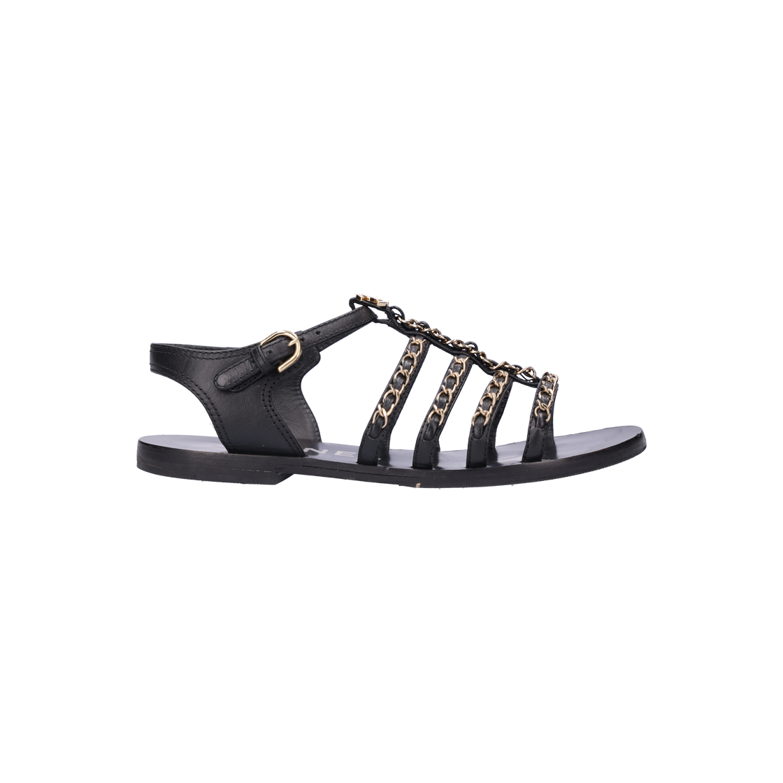 샤넬 G40077 CC 로고 체인 스트랩 샌들 블랙 골드 38 사이즈