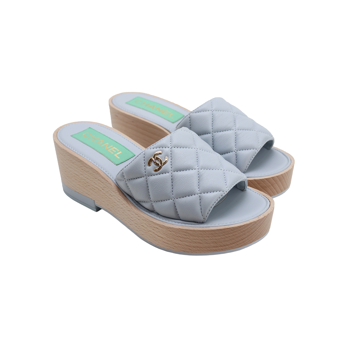 샤넬 램스킨 퀼팅 우드 뮬 G38555