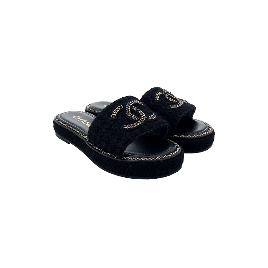 샤넬 25SS 체인CC로고 슬라이드 뮬 36 블랙 금장