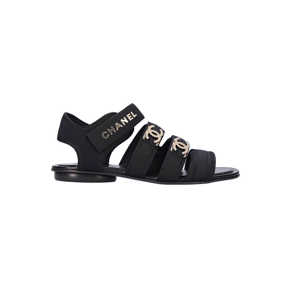 샤넬 25B 벨크로 샌들 37.5 블랙(5ET1487)