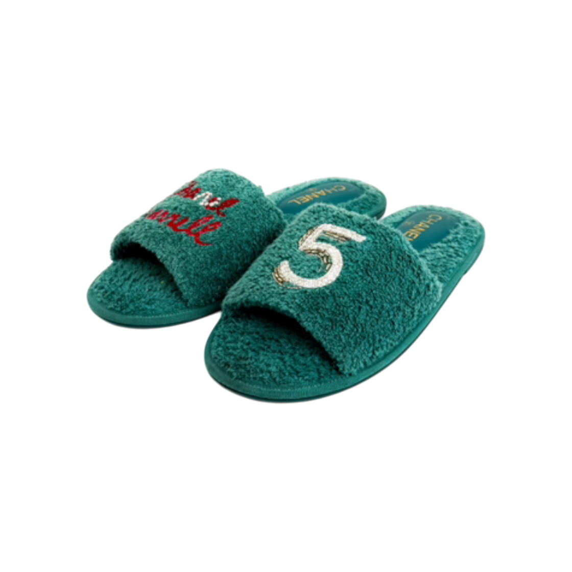 샤넬 x 퍼렐 한정판 마린 테리 슬라이드 슬리퍼 그린