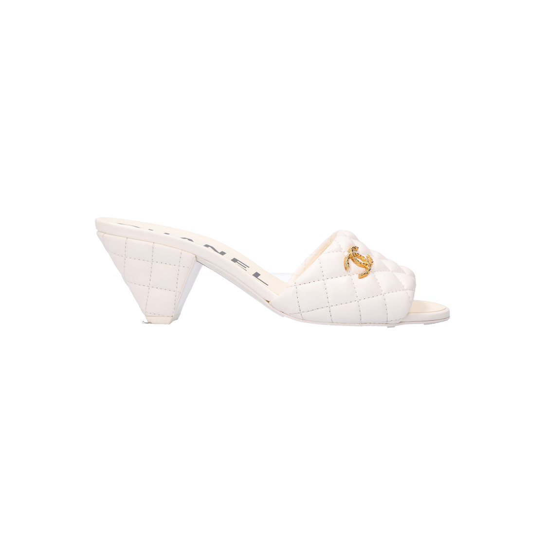 샤넬 G38820 힐 샌들 퀼팅 램스킨 화이트 37.5