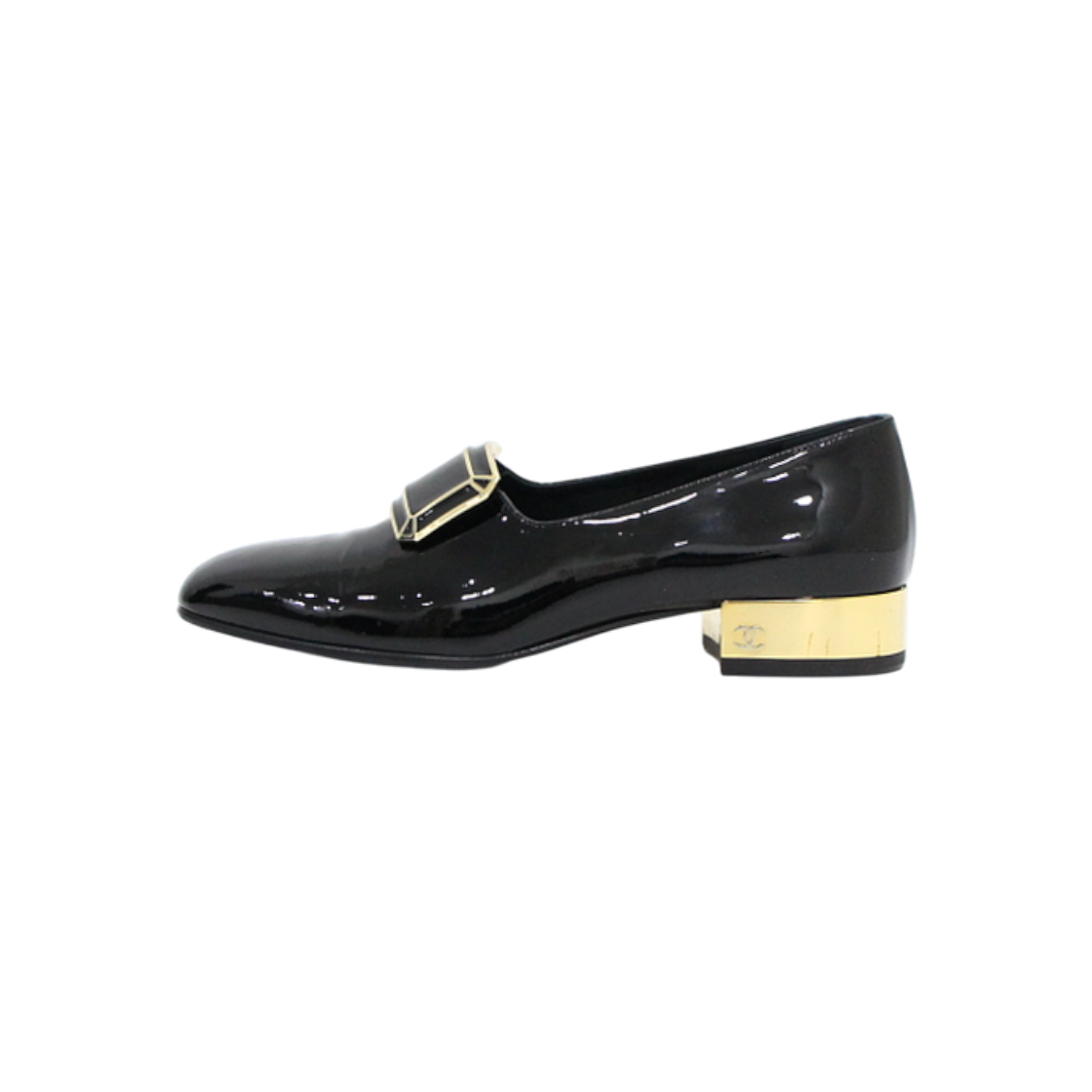 [미사용]샤넬 G33056 블랙 페이던트 금장 CC로고 여성 하이힐 구두aa56882