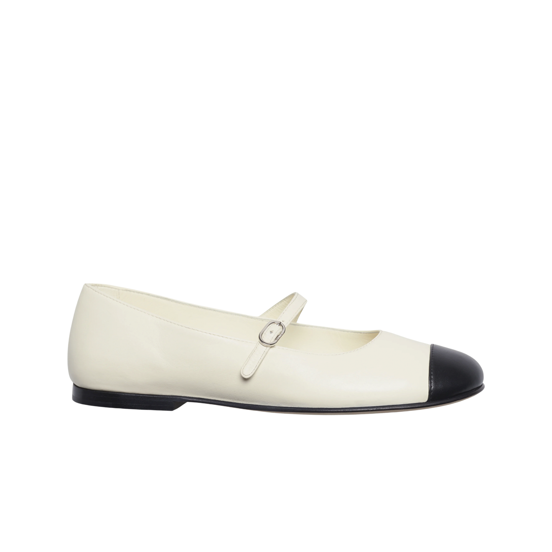 (W) 샤넬 발레리나 플랫 램스킨 & 아이보리 블랙