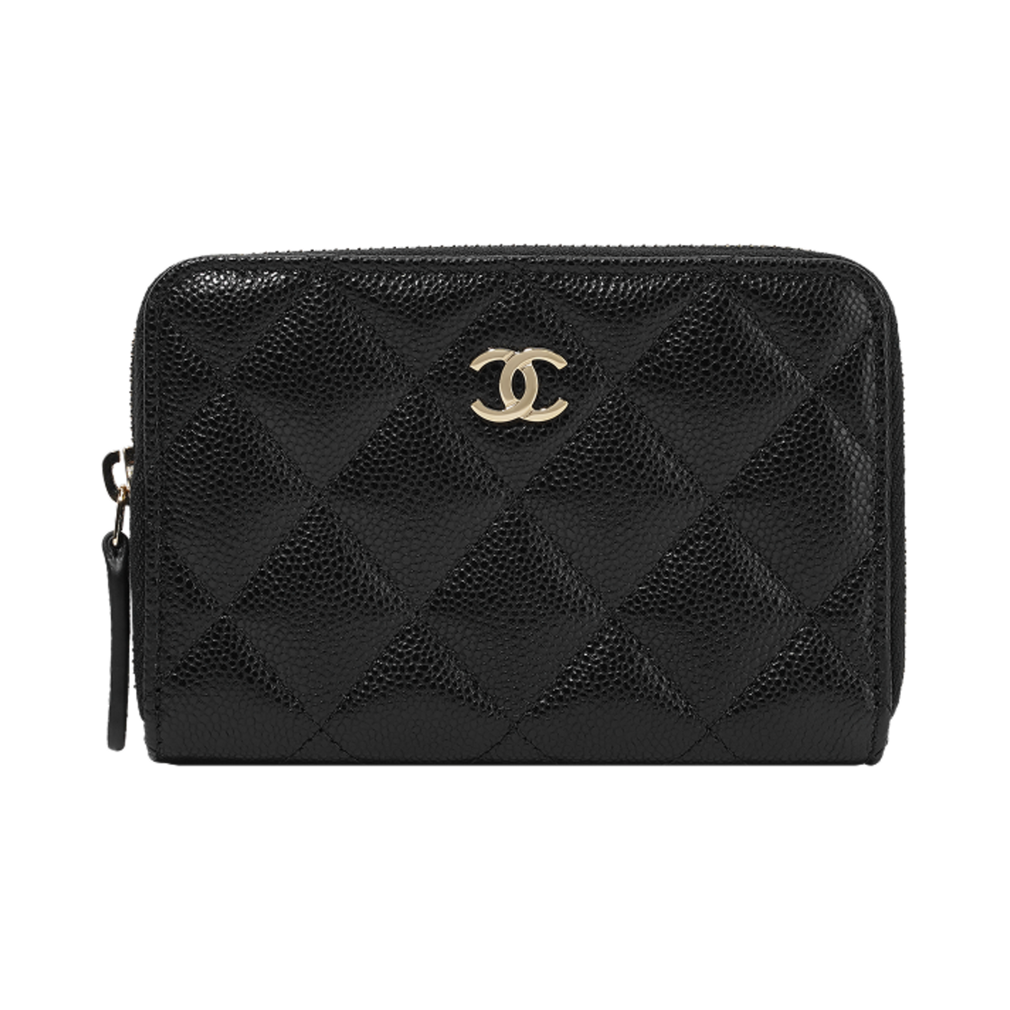 샤넬 클래식 지퍼 동전 지갑 그레인드 카프스킨 & 골드 메탈 블랙