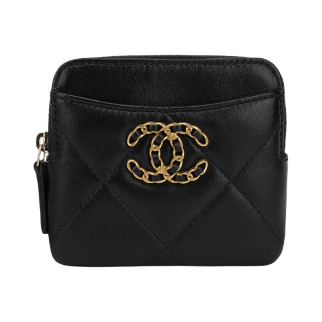 샤넬 19 지퍼 코인 지갑 램스킨 & 골드 메탈 블랙