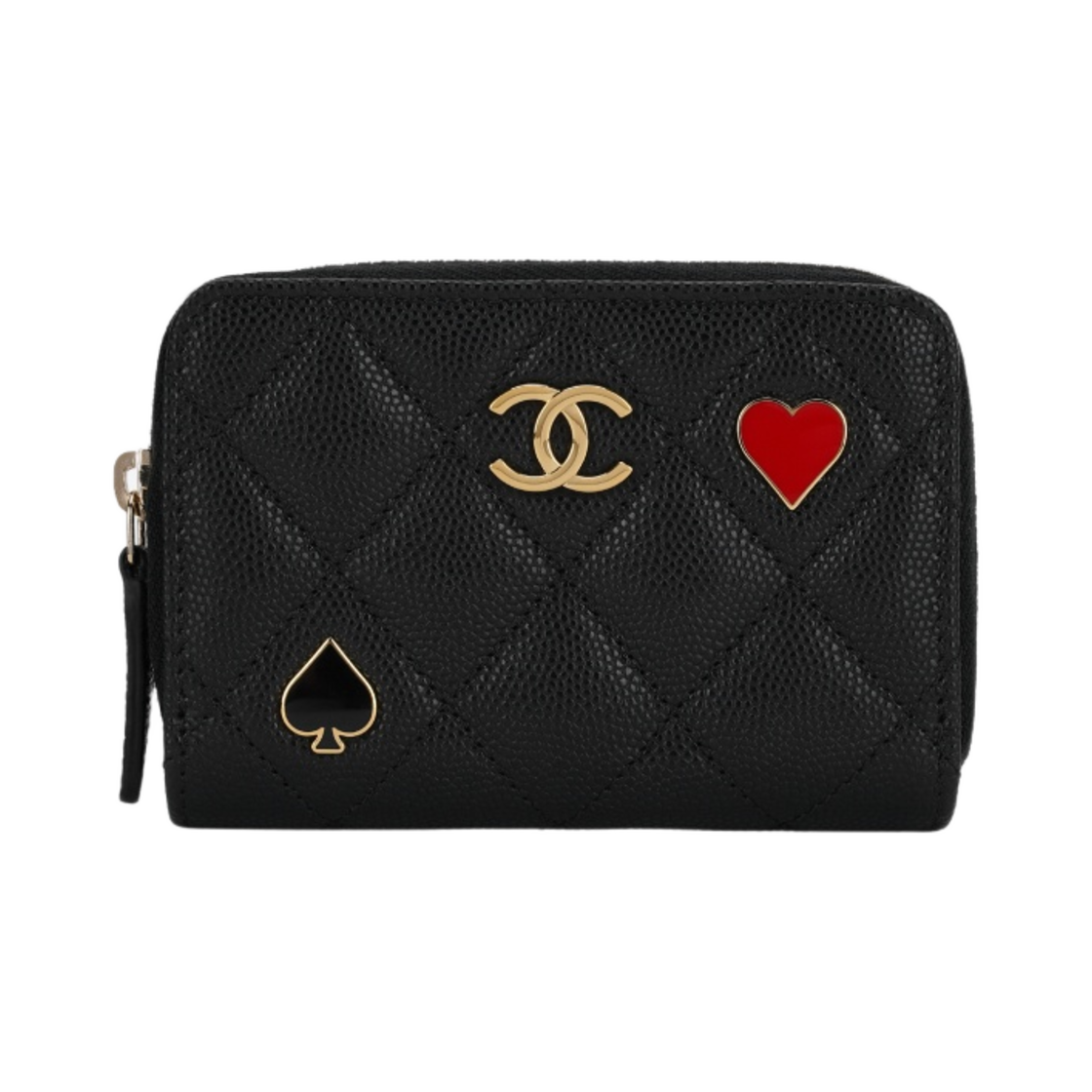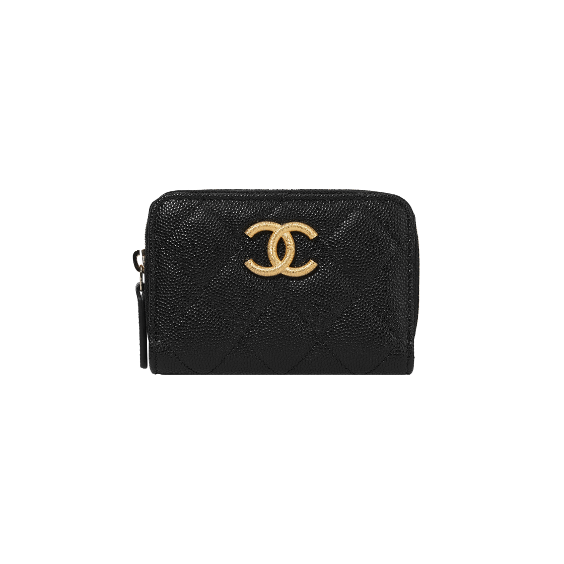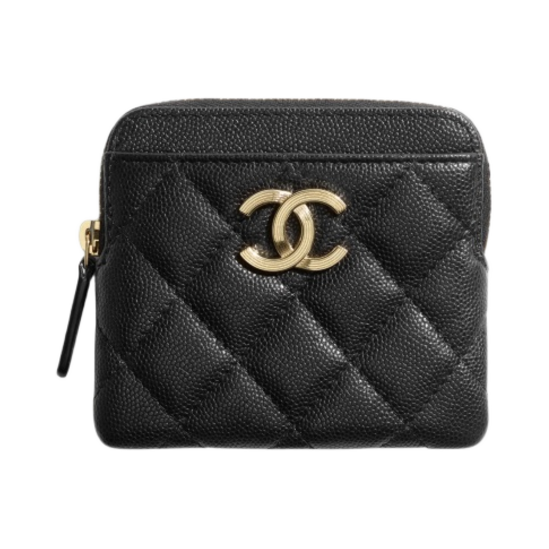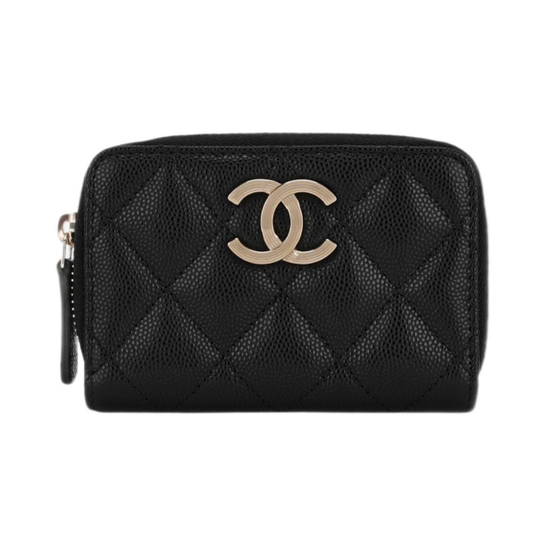 샤넬 지퍼 동전 지갑 그레인드 카프스킨 & 골드 메탈 블랙