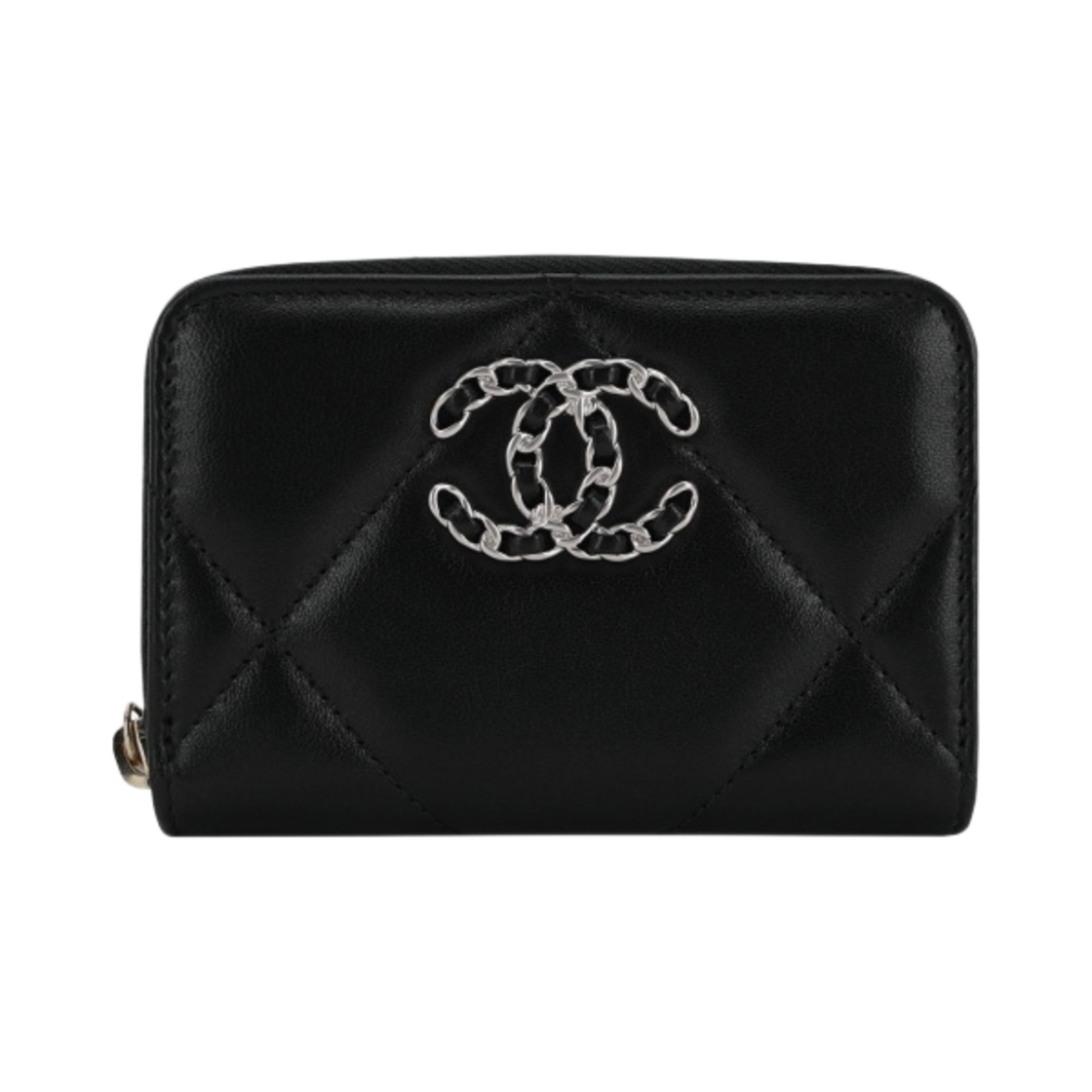 샤넬 19 지퍼 코인 지갑 램스킨 & 실버 메탈 블랙