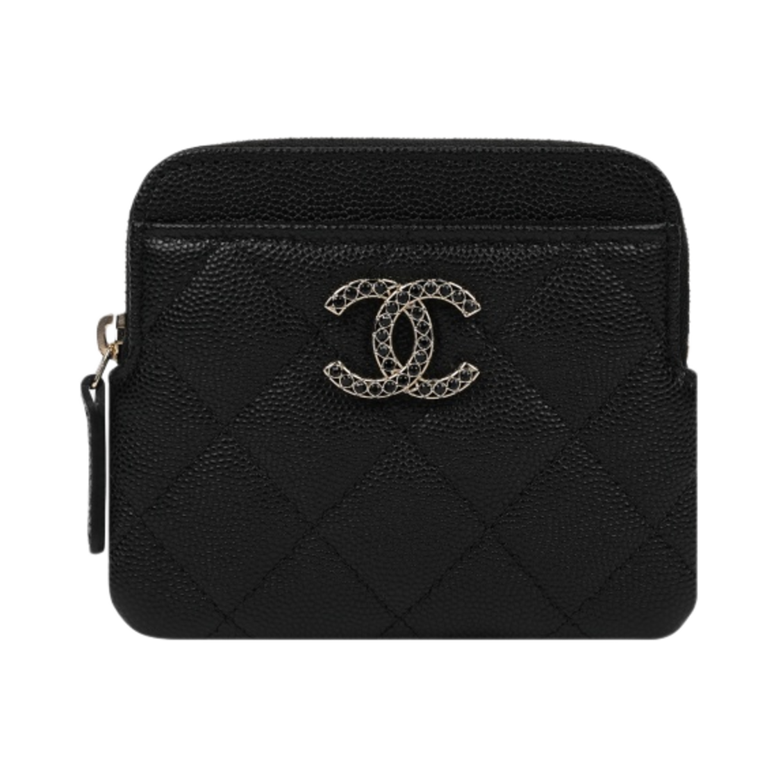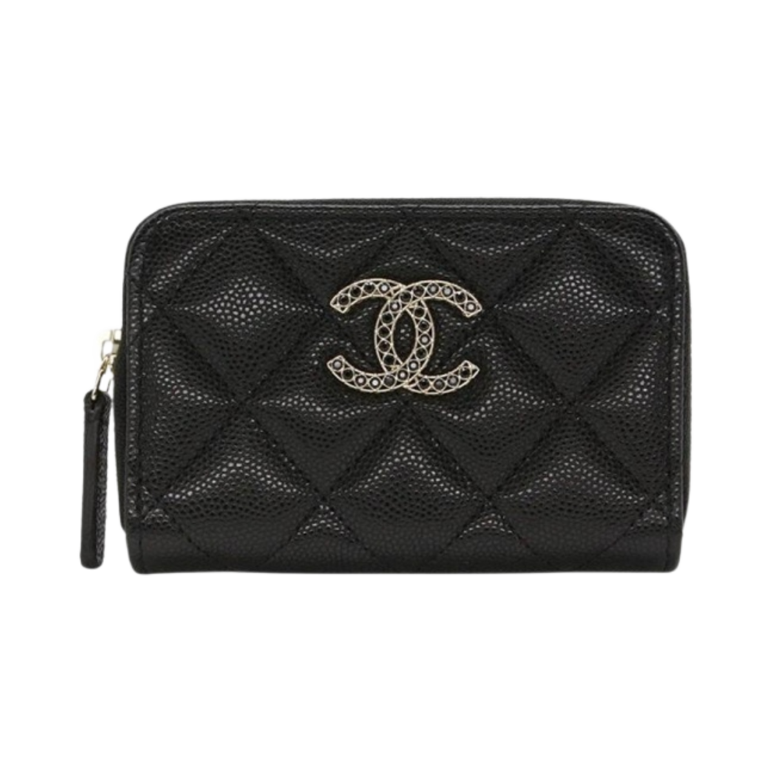 샤넬 지퍼 동전 지갑 샤이니 그레인드 카프스킨 스트라스 & 골드 메탈 블랙