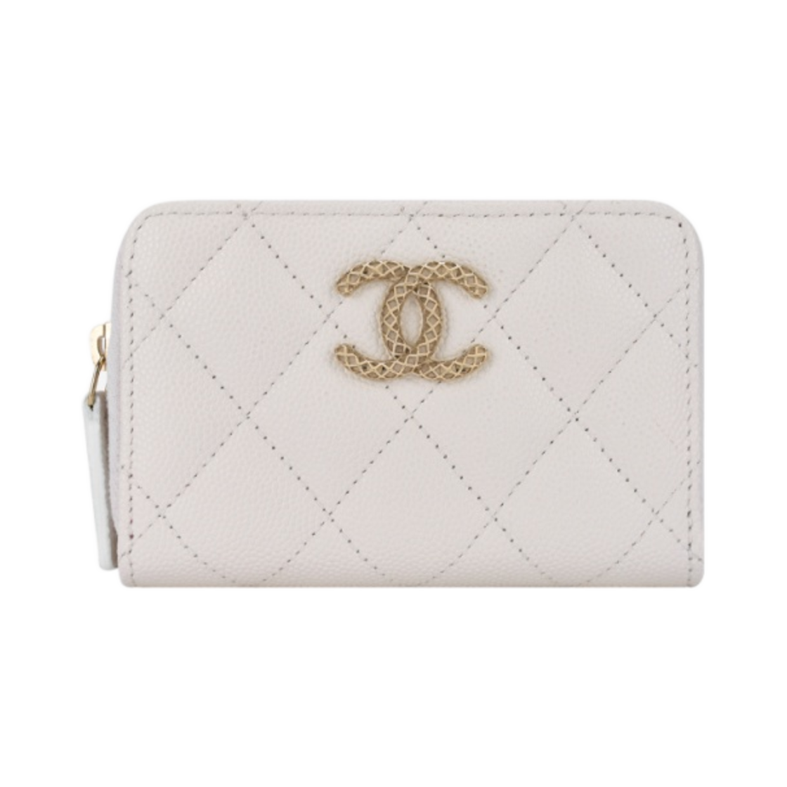 샤넬 지퍼 동전 지갑 그레인드 샤이니 카프스킨 & 골드 메탈 화이트