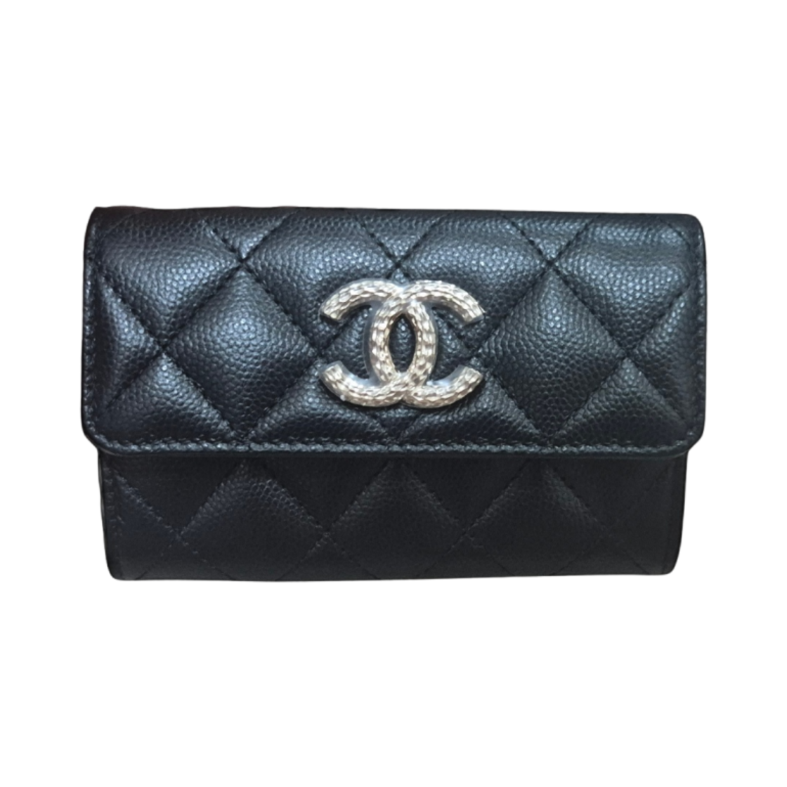 샤넬 블랙 캐비어스킨 카드 홀더 지갑 C-B41707