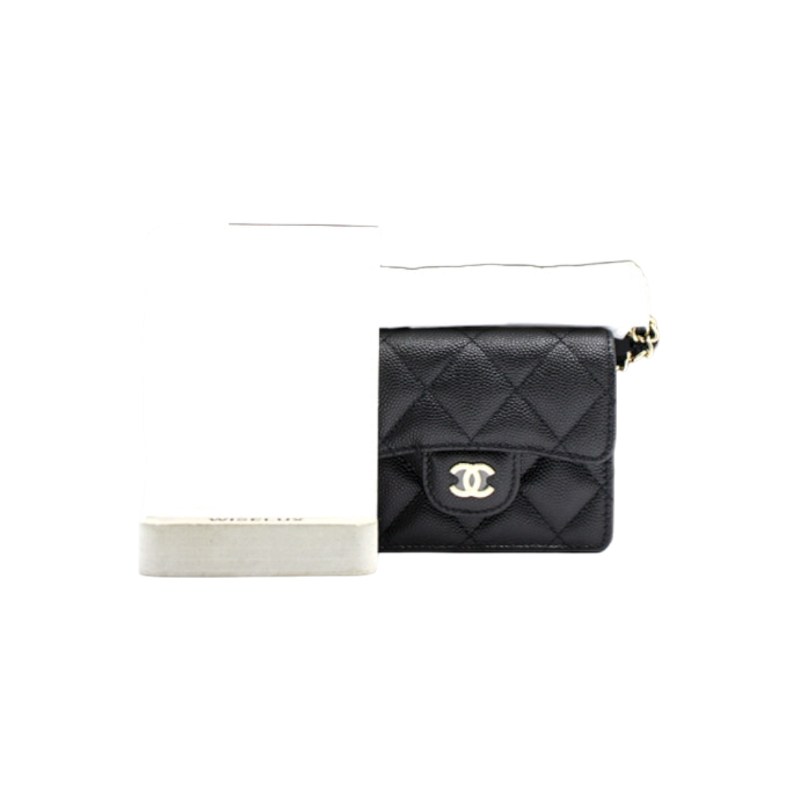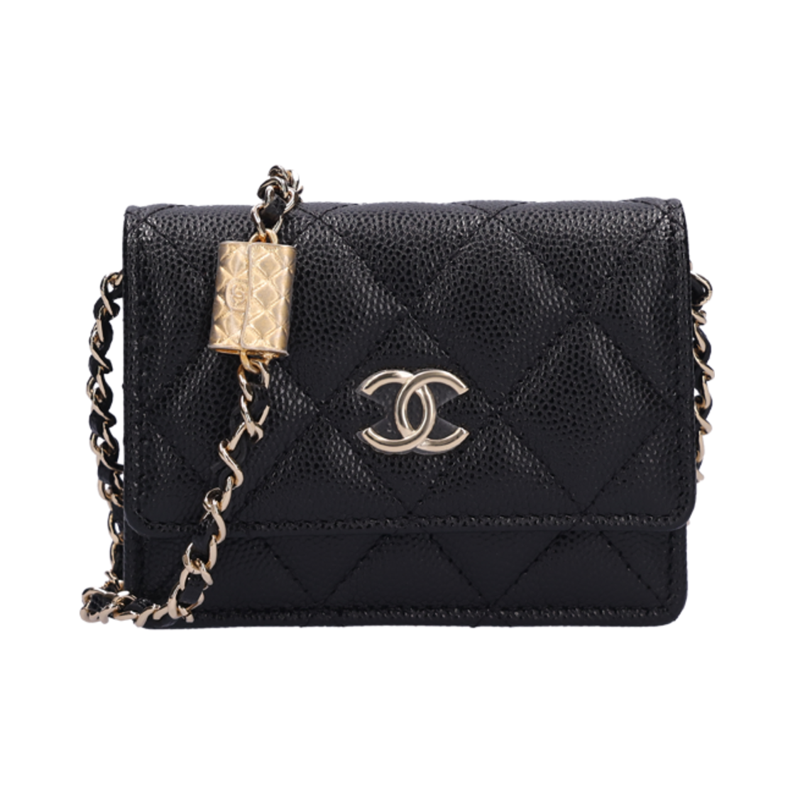 샤넬 클래식 플랩 체인 카드 홀더 그레인드 카프스킨 & 골드 메탈 블랙