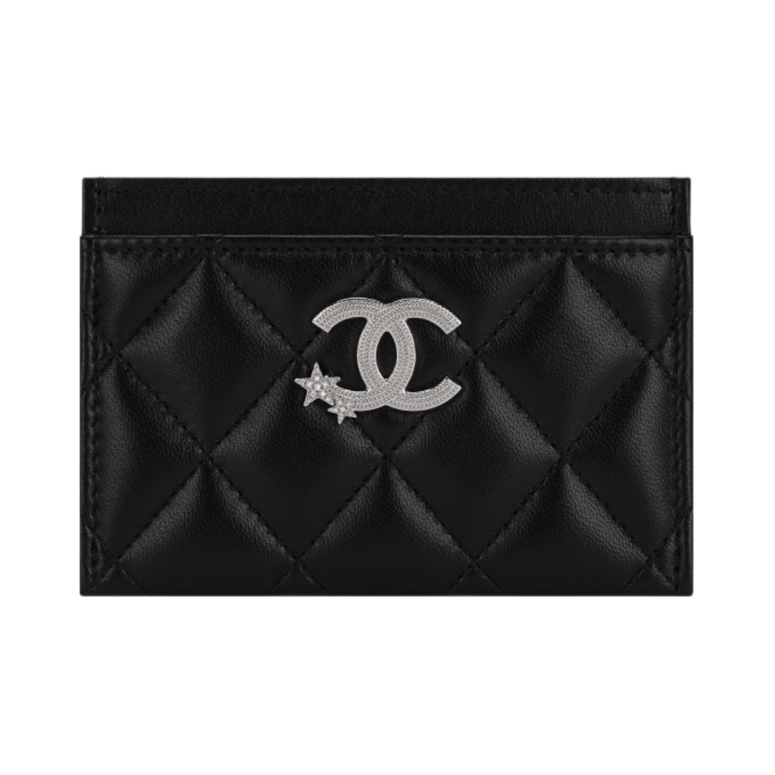 샤넬 카드 홀더 램스킨 스트라스 & 실버 메탈 블랙