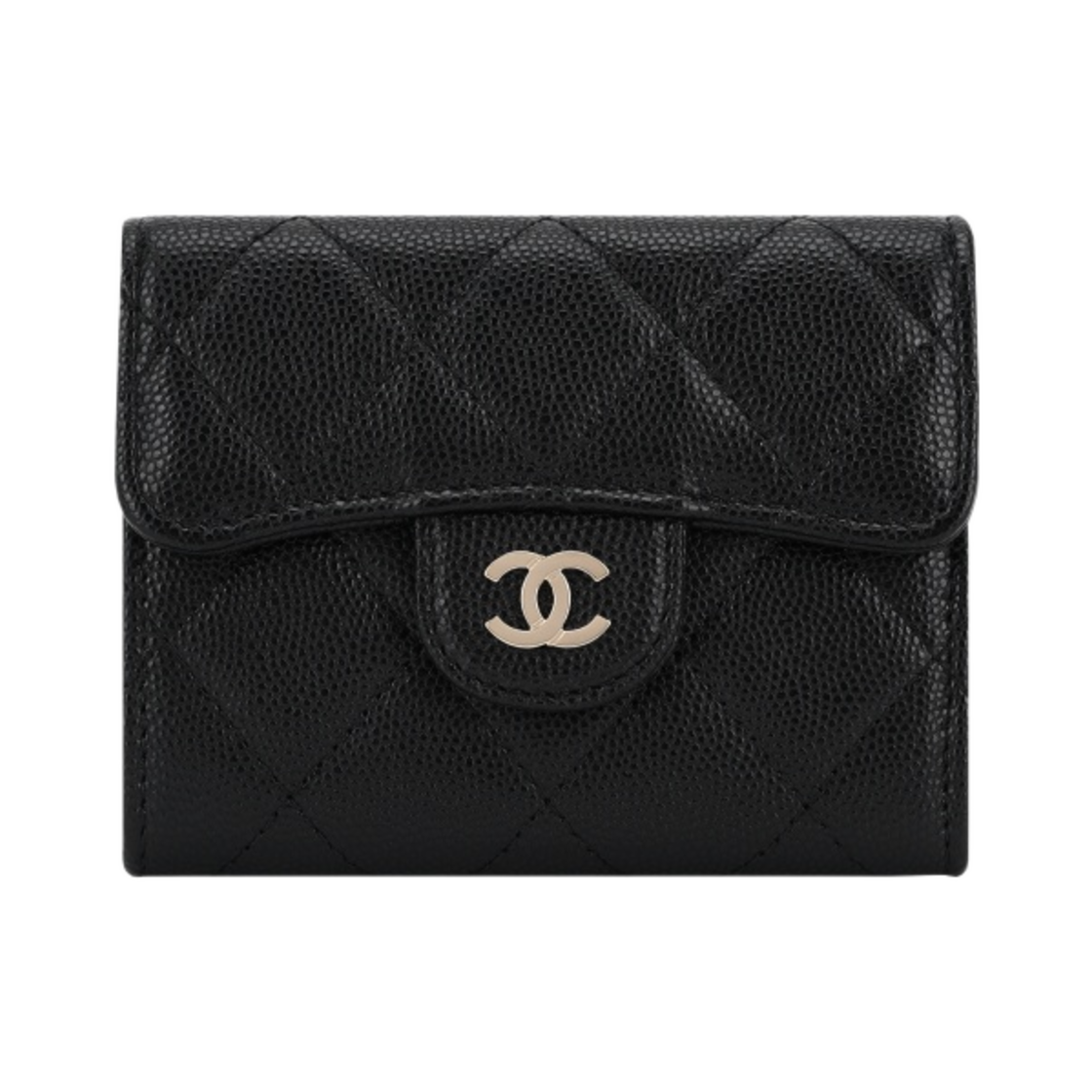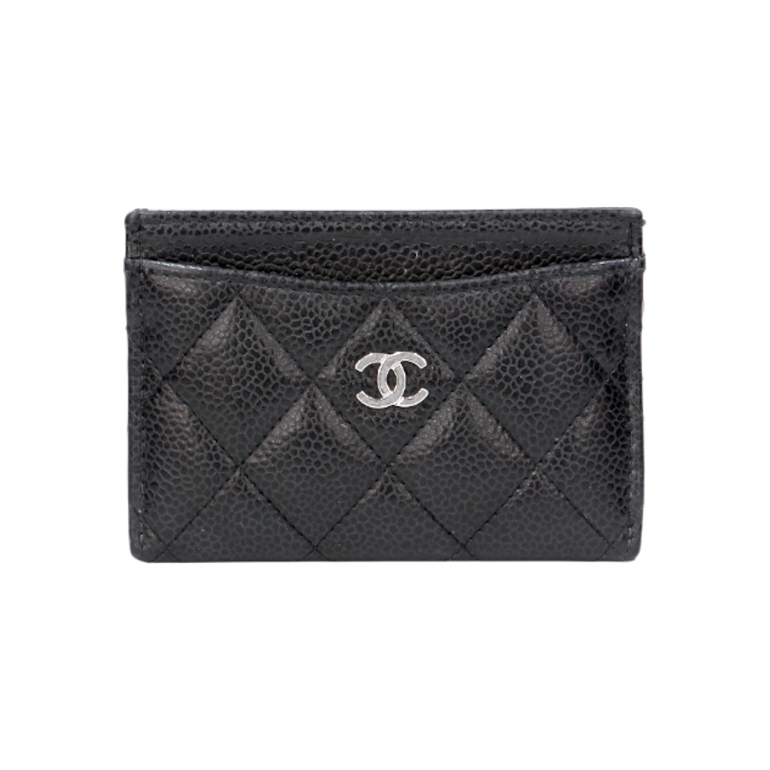 샤넬 클래식 카드 홀더 그레인드 카프스킨 & 실버 메탈 블랙