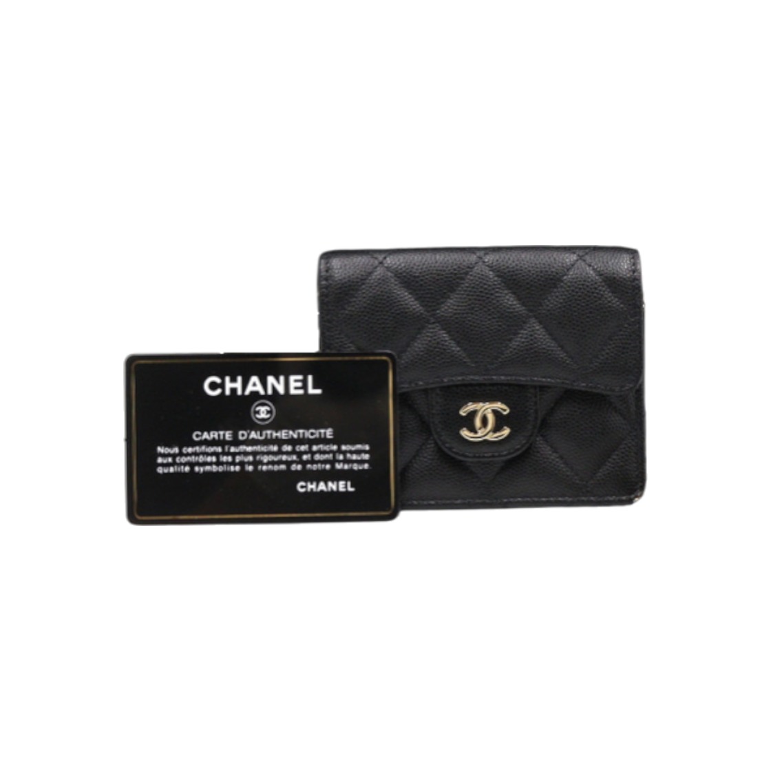 샤넬 클래식 카드 홀더 그레인드 카프스킨 & 골드 메탈 블랙