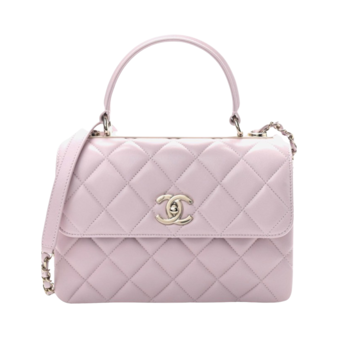 샤넬 핸들 장식의 스몰 플랩백 램스킨 & 골드 메탈 라이트 핑크