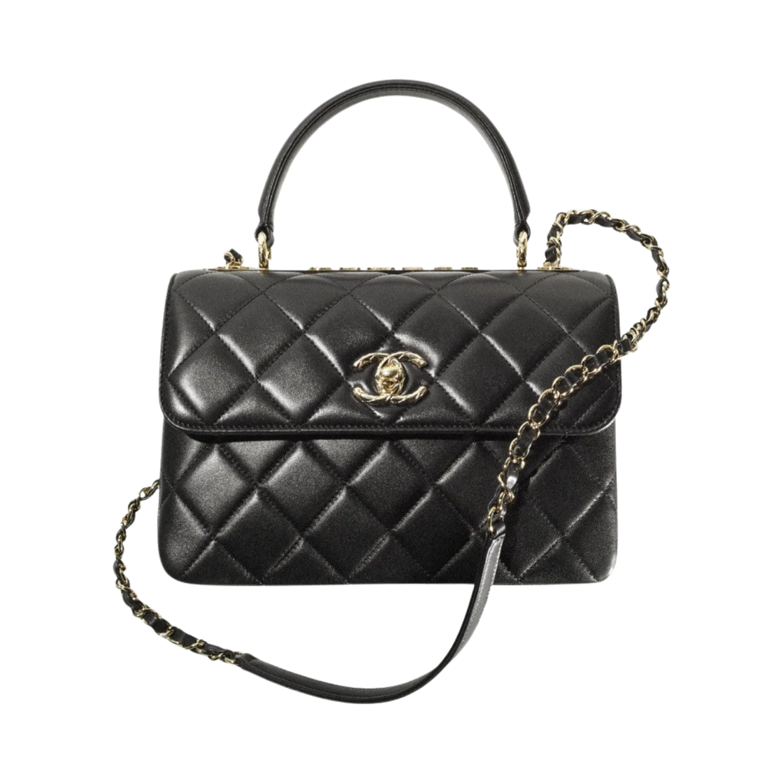 샤넬 핸들 장식의 플랩백 램스킨 & 골드 메탈 블랙