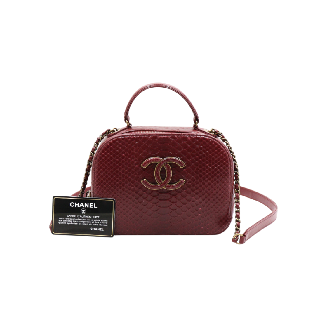 샤넬 A93463 버건디 파이톤 레더 코코 배니티 탑핸들 케이스 aa50813