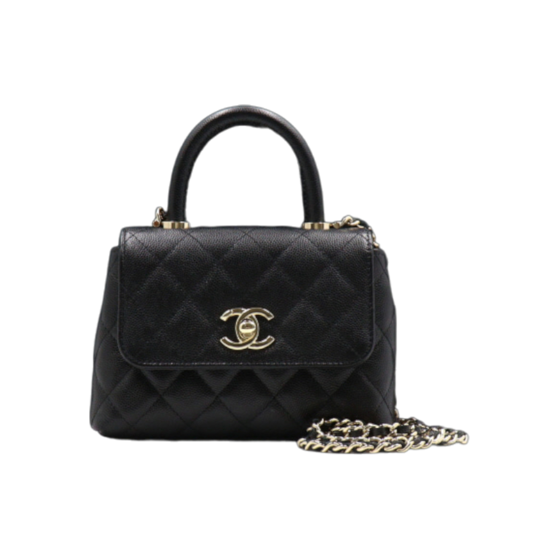 샤넬 체인 달린 미니백 그레인드 카프스킨 & 골드 메탈 블랙