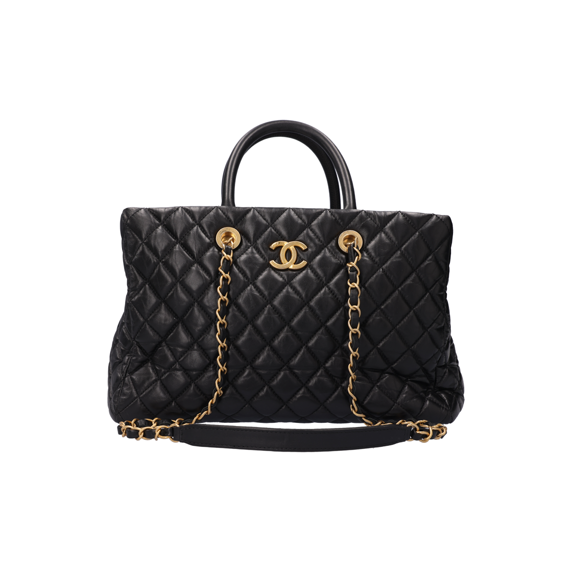 샤넬 A92992 블랙 쉐브론 카프스킨 코코핸들 라지 토트백, 스트랩