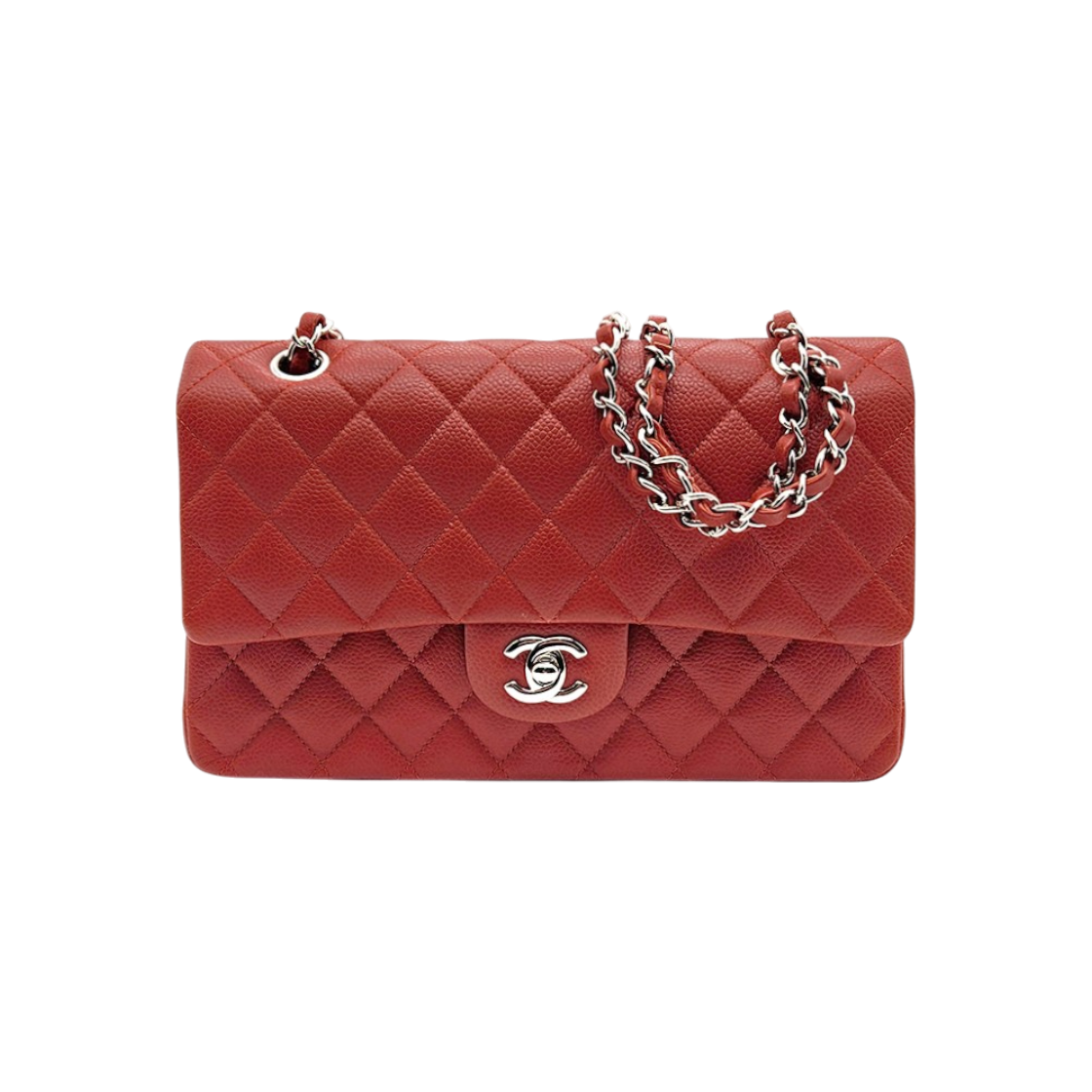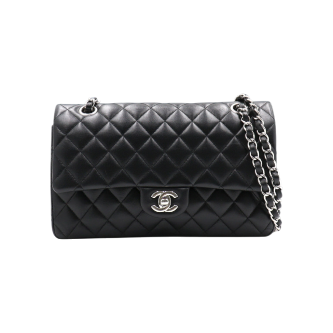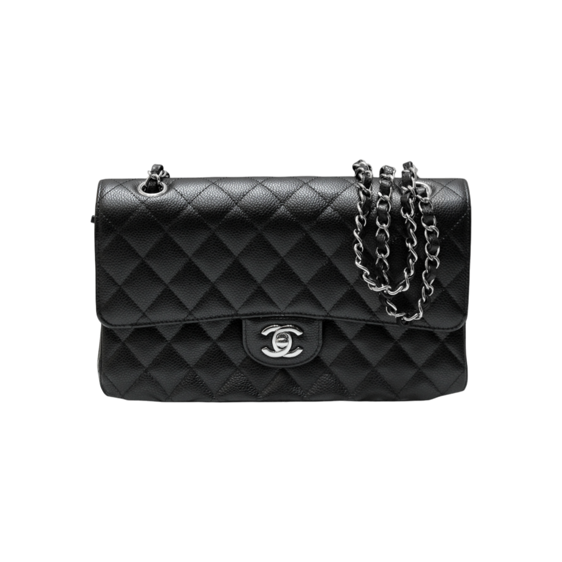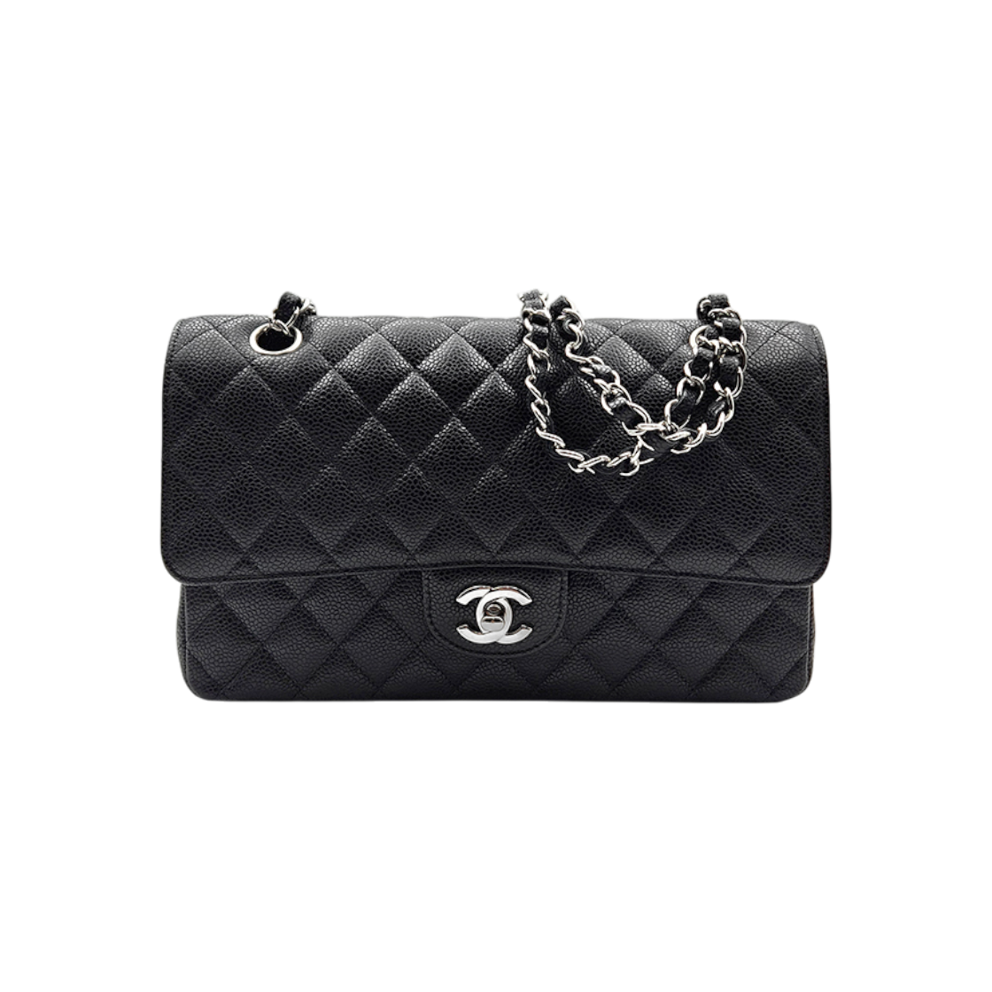샤넬 클래식 미디움 플랩백 그레인드 카프스킨 & 실버 메탈 블랙