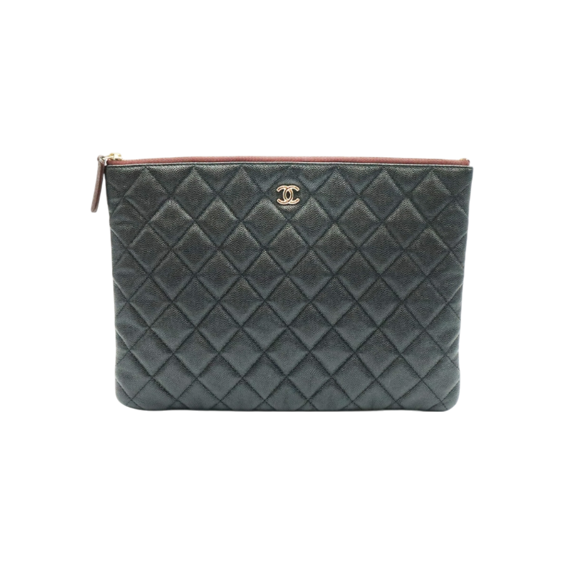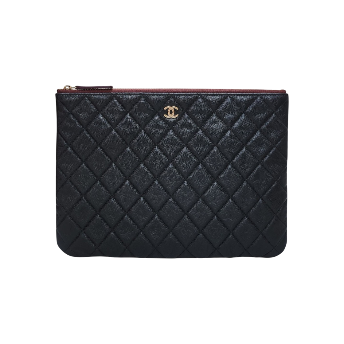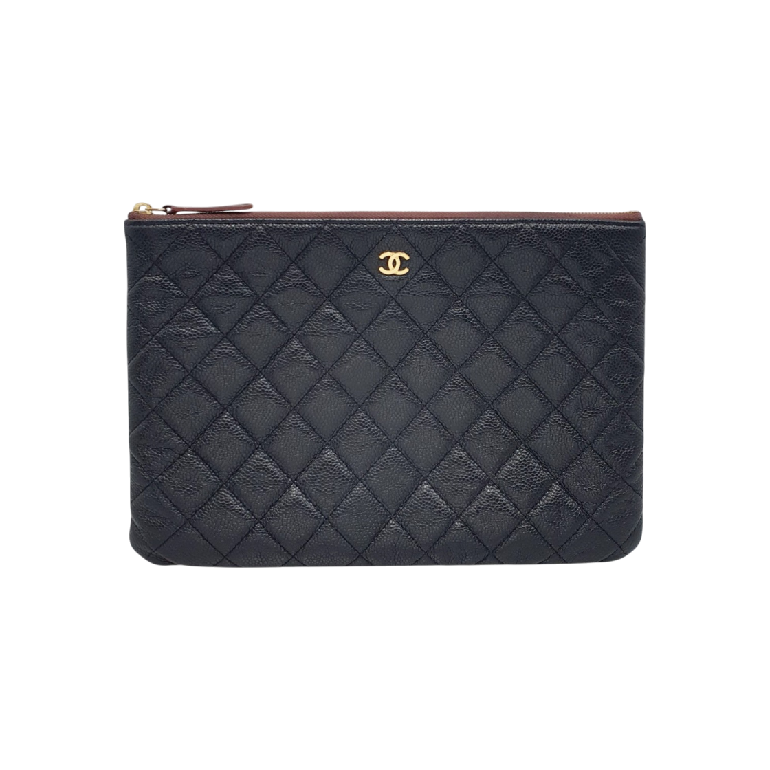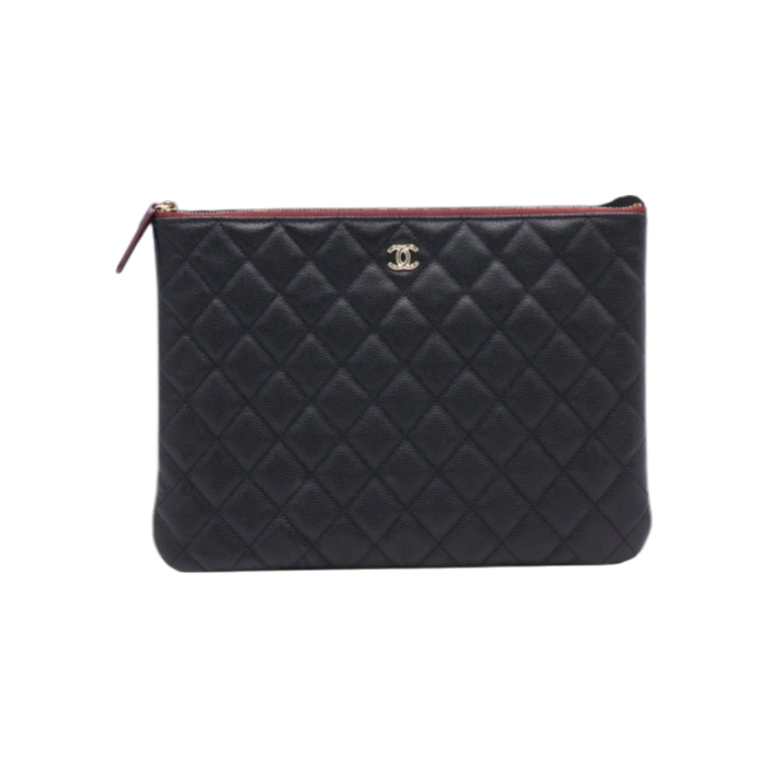 샤넬 A82545 블랙 캐비어스킨 클래식 금장 CC로고 뉴미듐 클러치