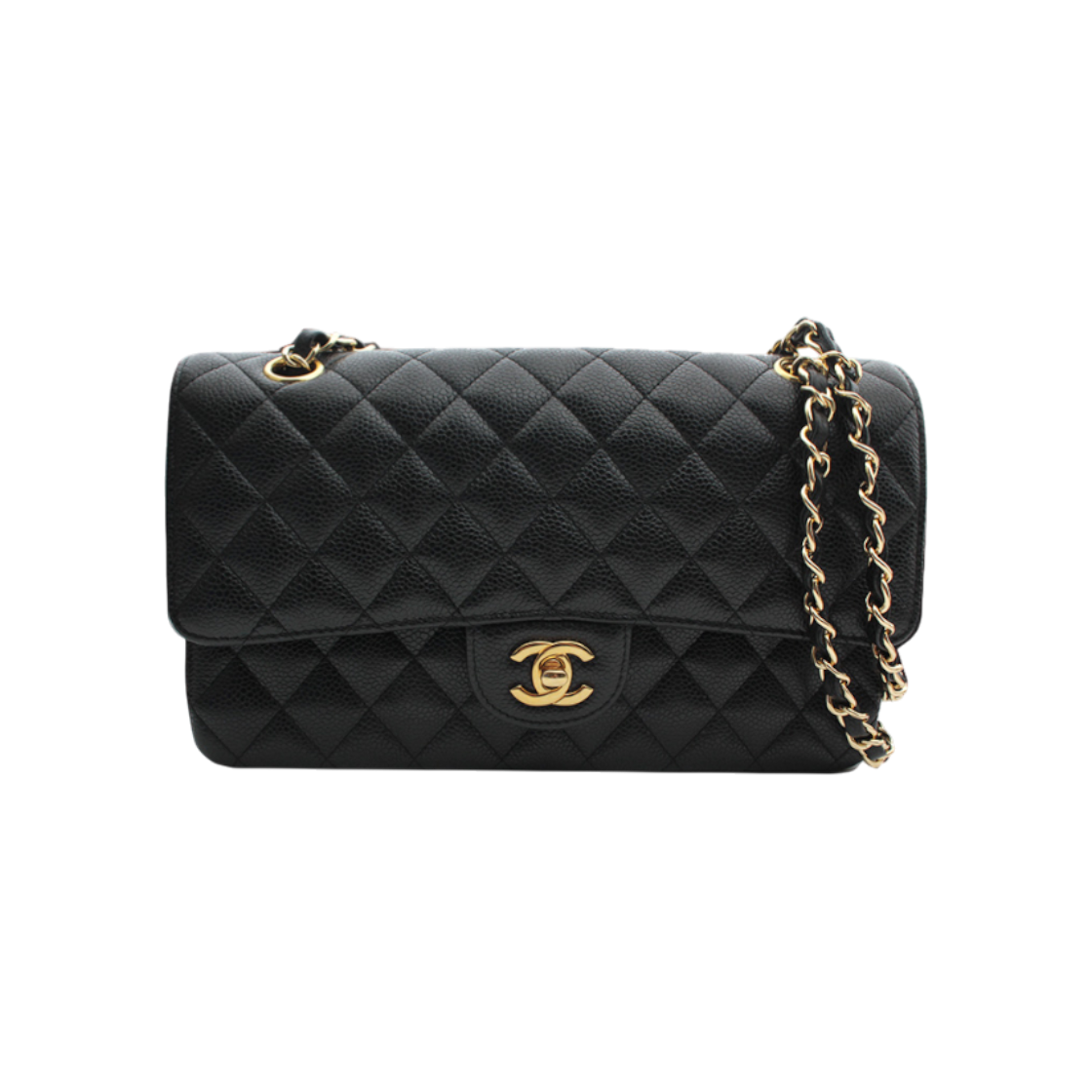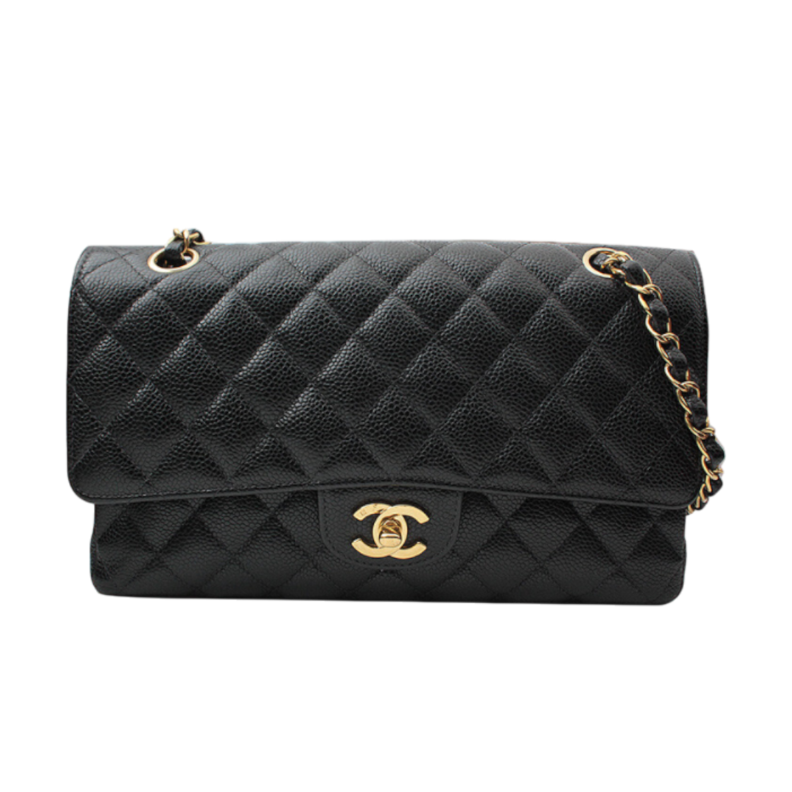 샤넬 블랙 캐비어 클래식 금장 미듐 숄더백 (9번대)