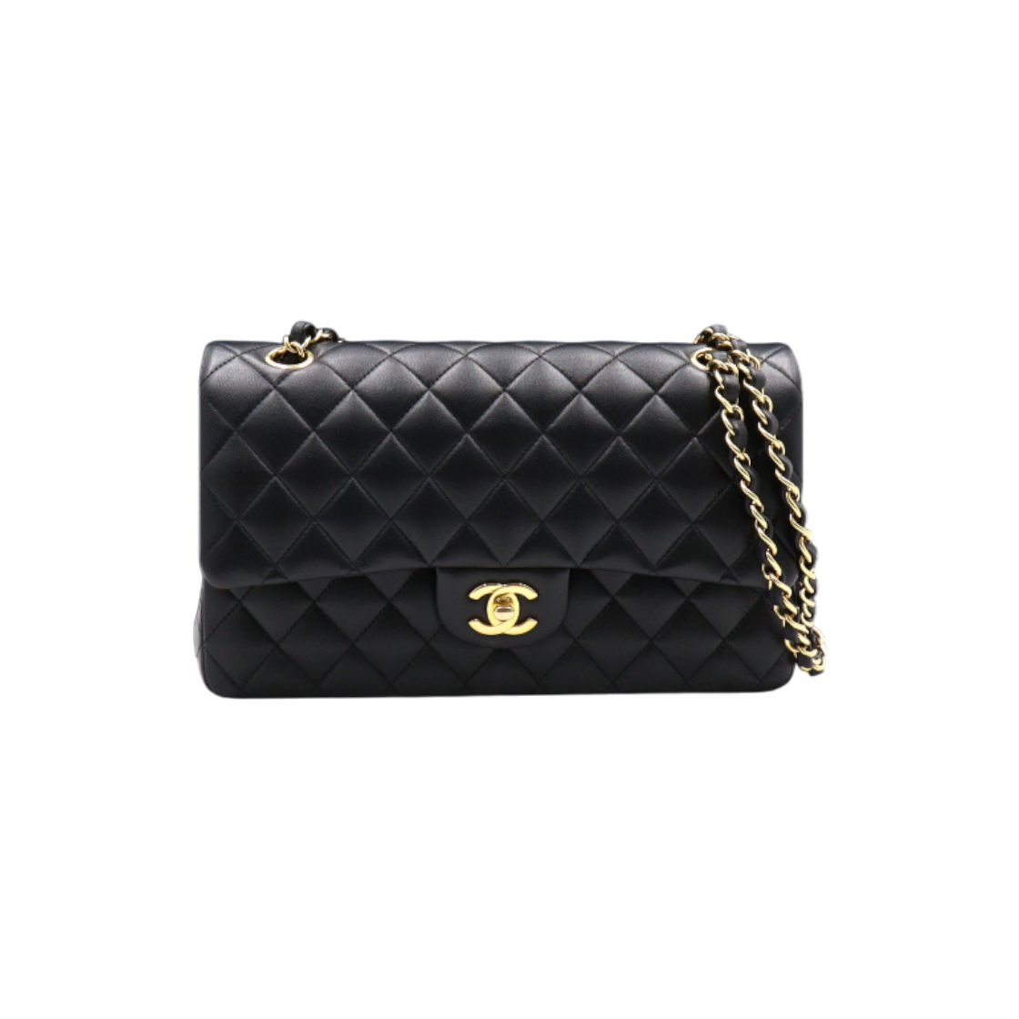 샤넬 A01112 블랙 램스킨 클래식 미듐 금장체인 숄더백 aa48536