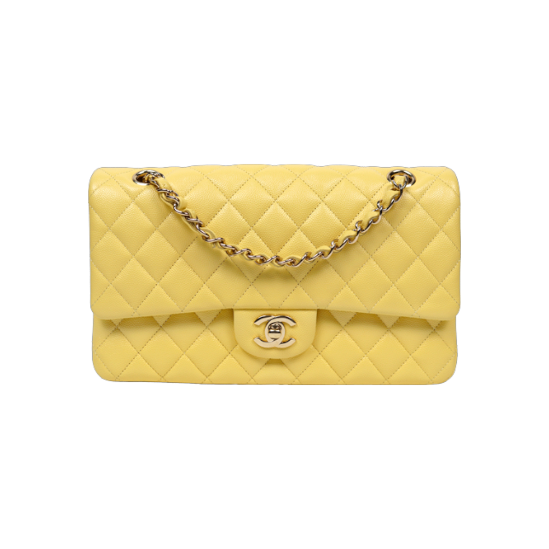 샤넬 미듐 옐로우 캐비어스킨 클래식백 D-A40026