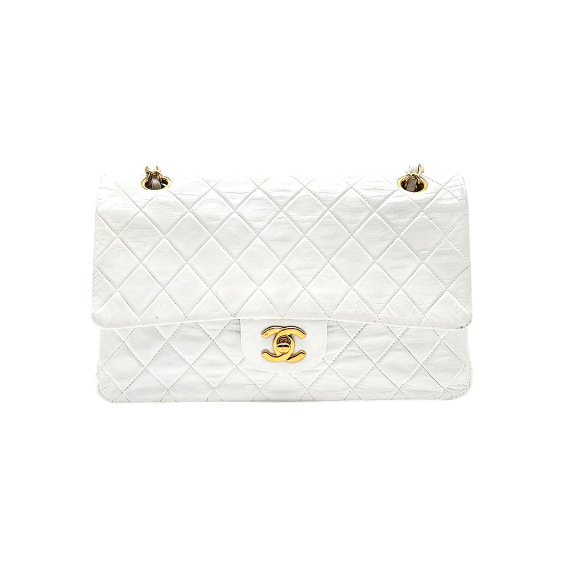 샤넬 클래식 미디움 플랩백 그레인드 카프스킨 & 골드 메탈 화이트