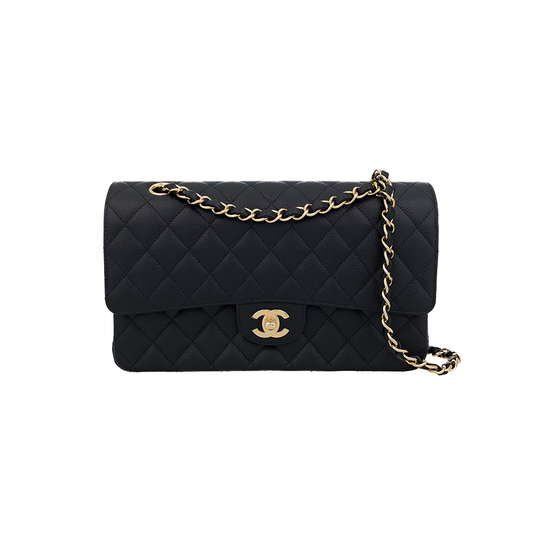 샤넬 클래식 미디움 케이스 그레인드 카프스킨 & 골드 메탈 블랙