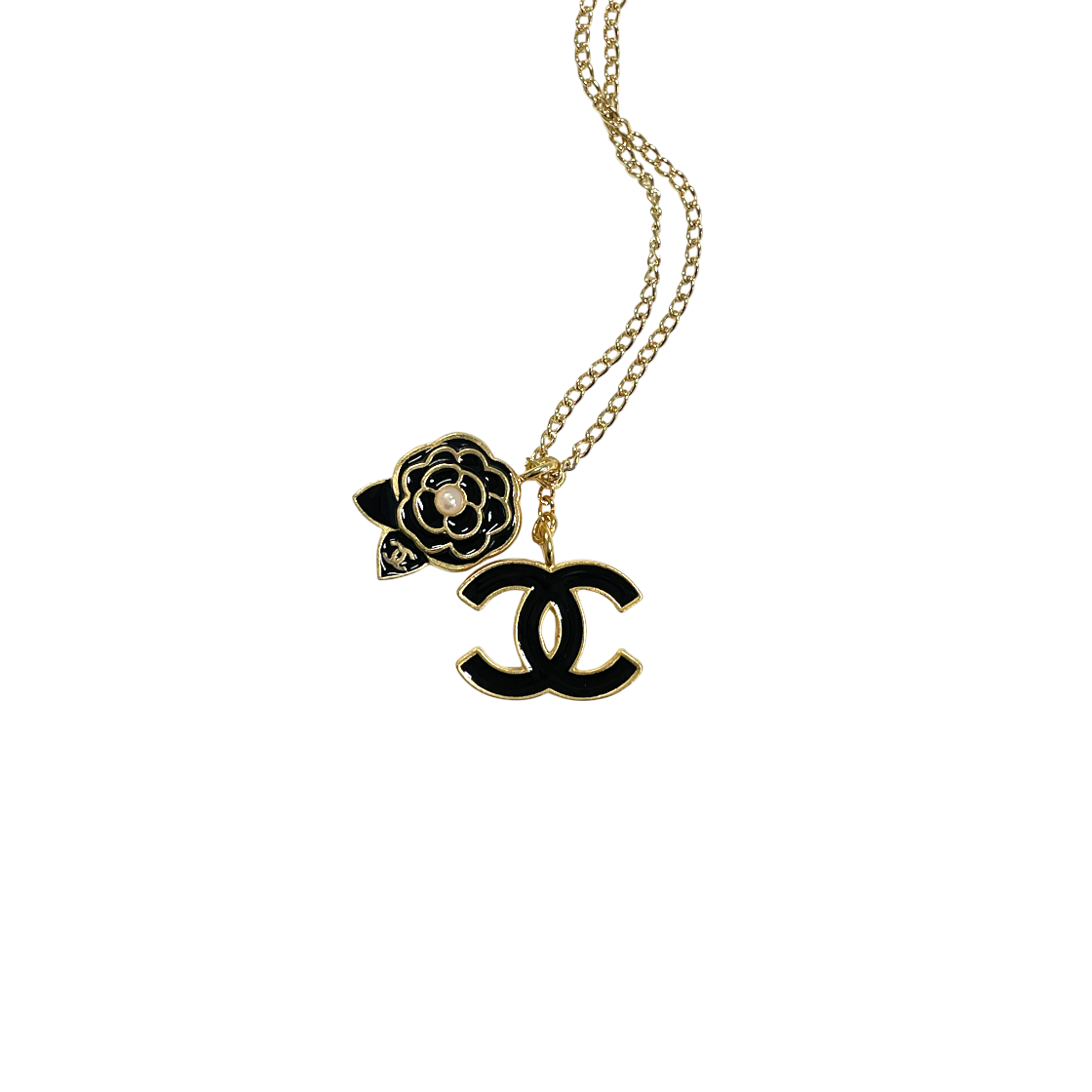 샤넬 킬 블랙 까멜리아 골드 더블 펜던트 목걸이