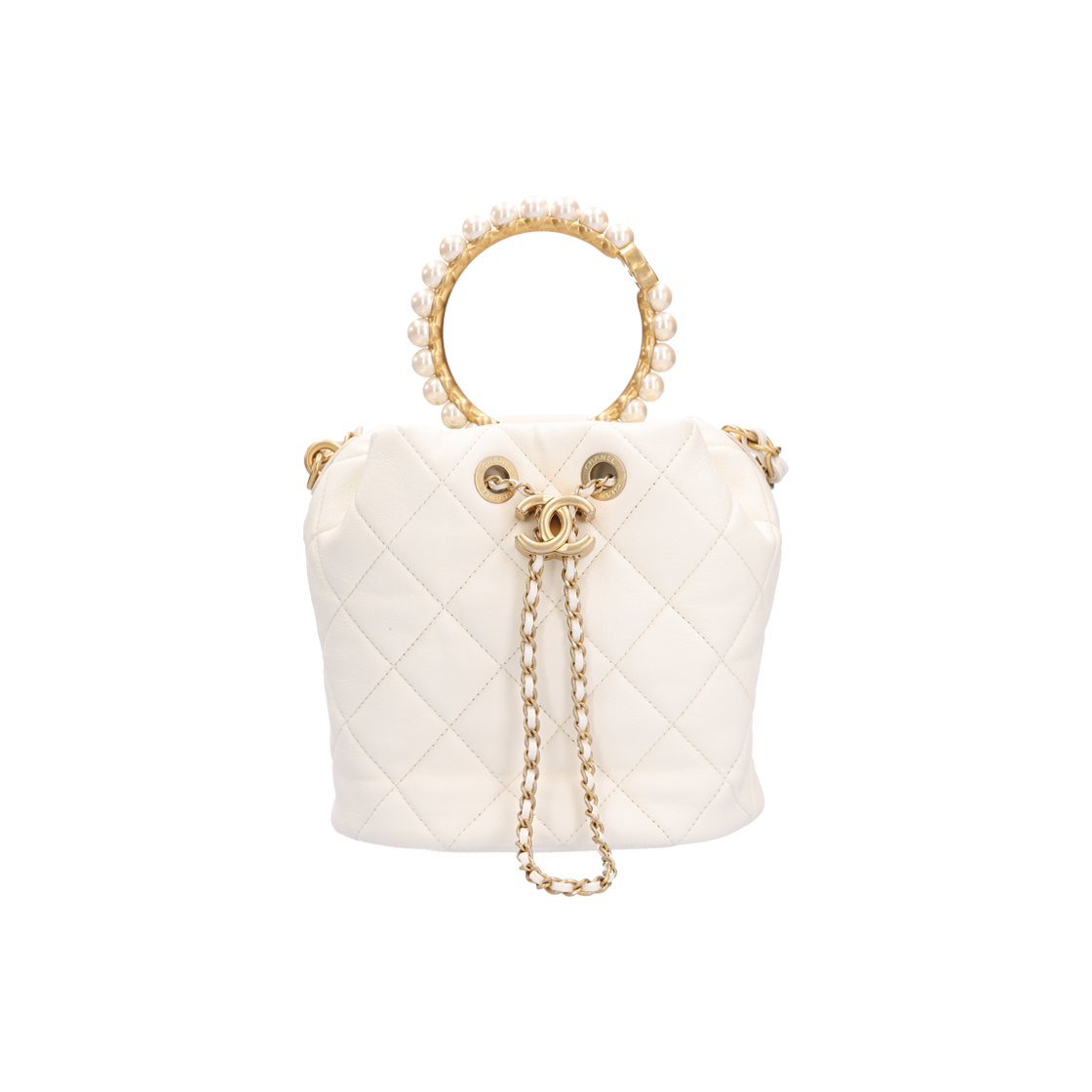 샤넬 AS2608 펄 탑핸들 버킷백 레더 화이트 금장