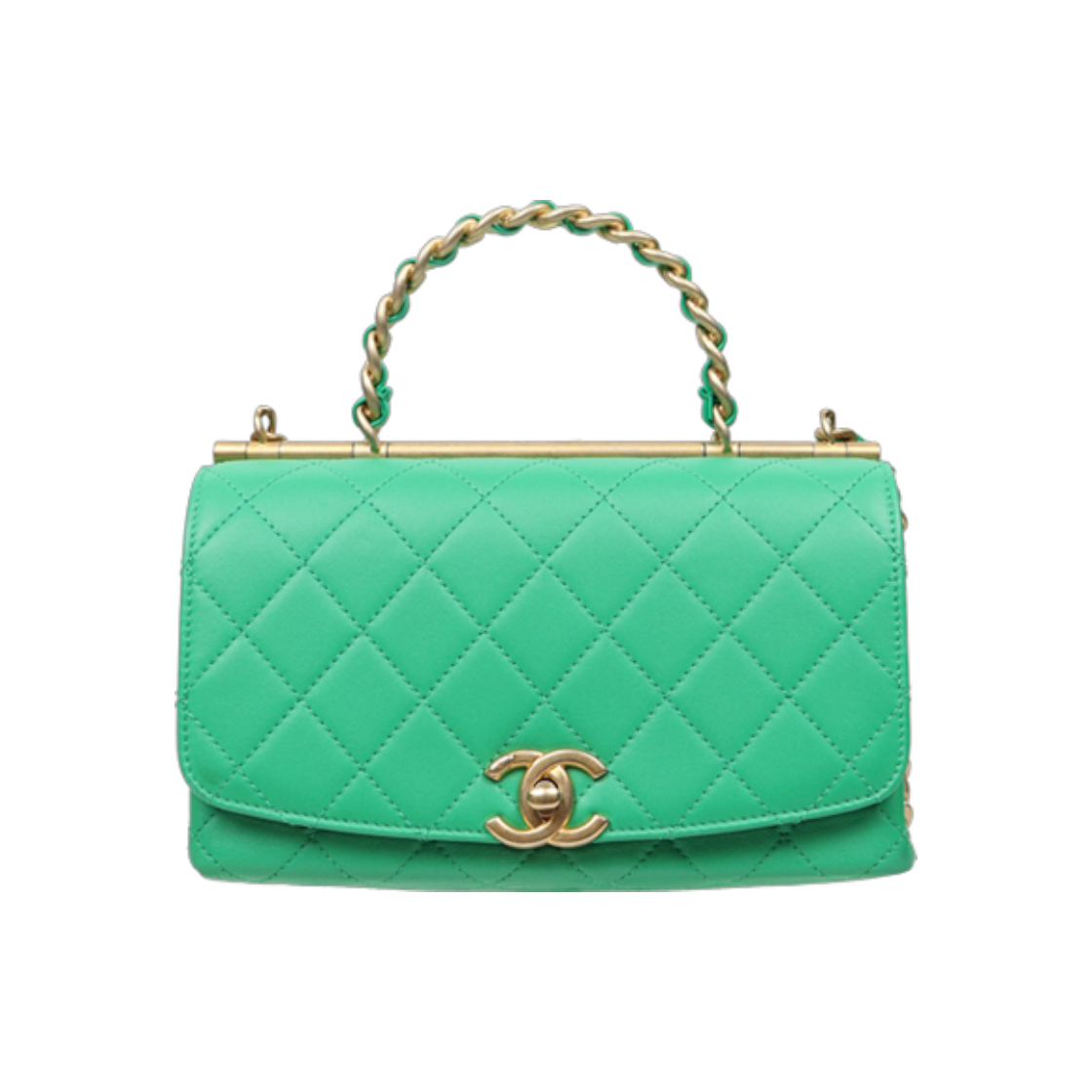 샤넬 스몰 그린 램스킨 탑 핸들 플랩백 D-A40913