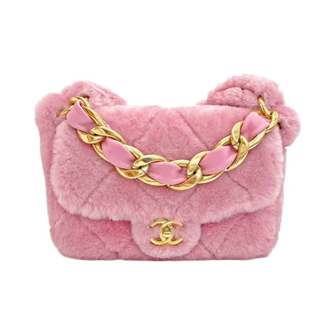 샤넬 시어링 체인 플랩백 핑크 금장